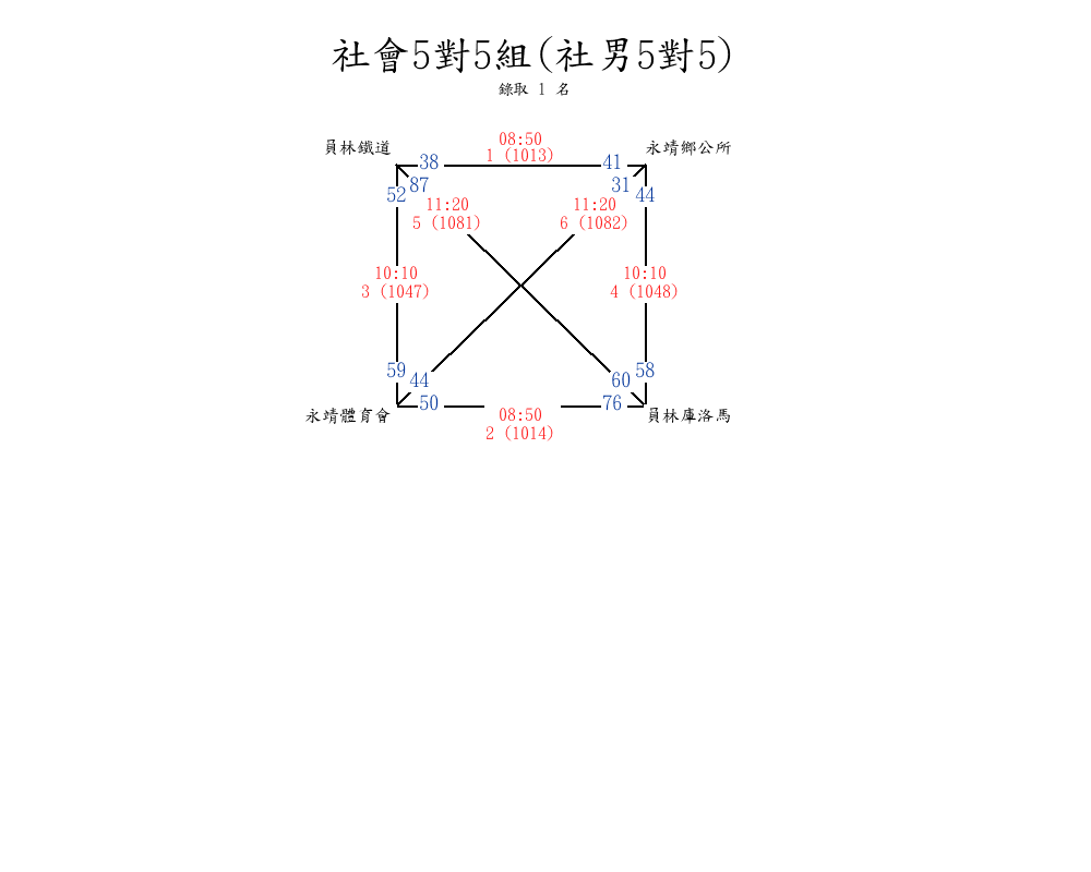 1社男5對5 ( 4取1 ) 圖 第 1 名員林鐵道 {員林鐵道}吳鎮佑、簡仁育、廖宜賢、黃鴻雁、吳進楷、吳聰萬、劉國仙、賴宜傑、李義昌