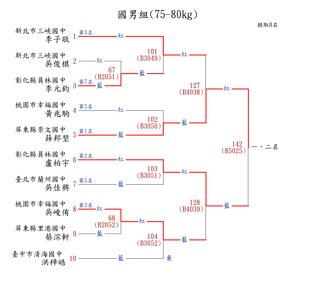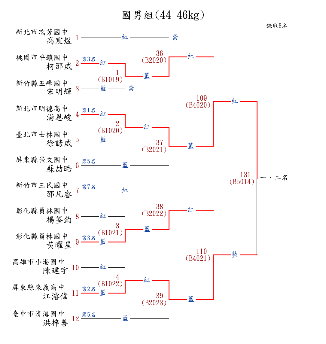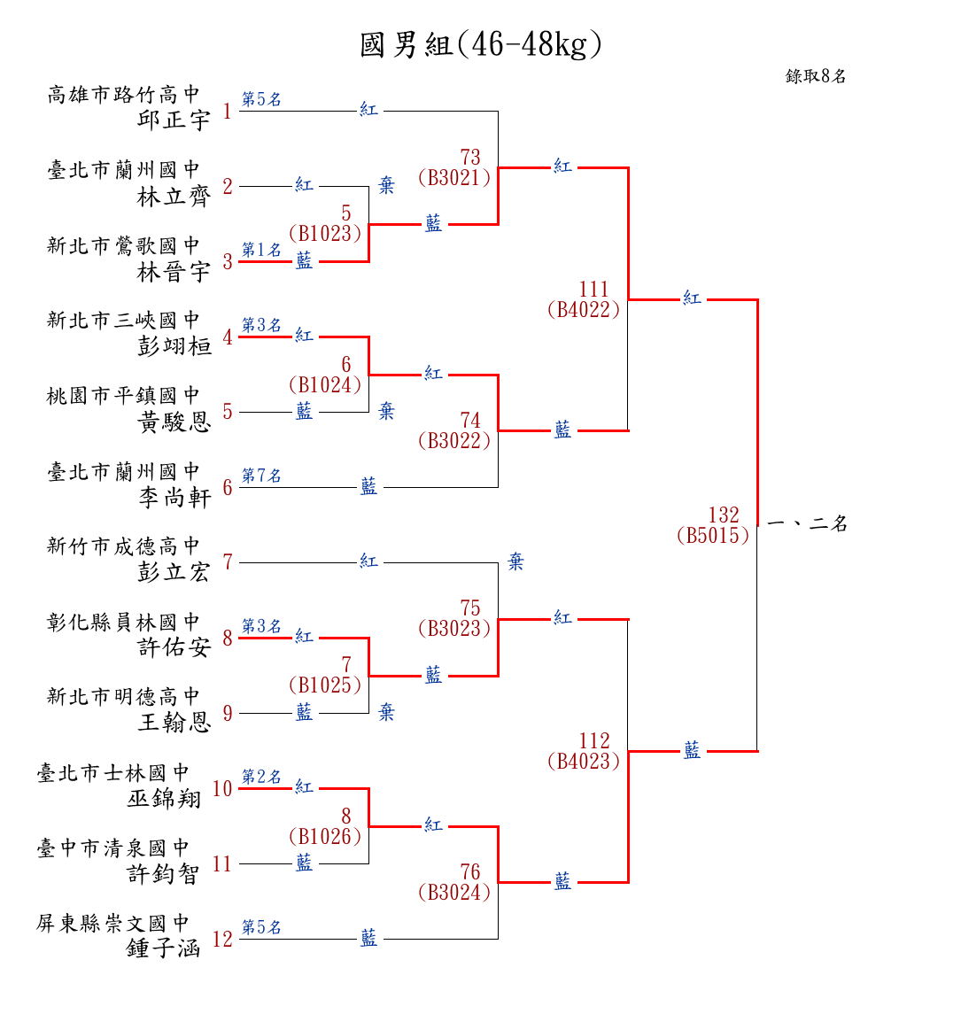 8國男組(46-48kg) ( 12取8 ) 圖 第 1 名[] 新北市鶯歌國中 {新北市鶯歌國中}林晉宇