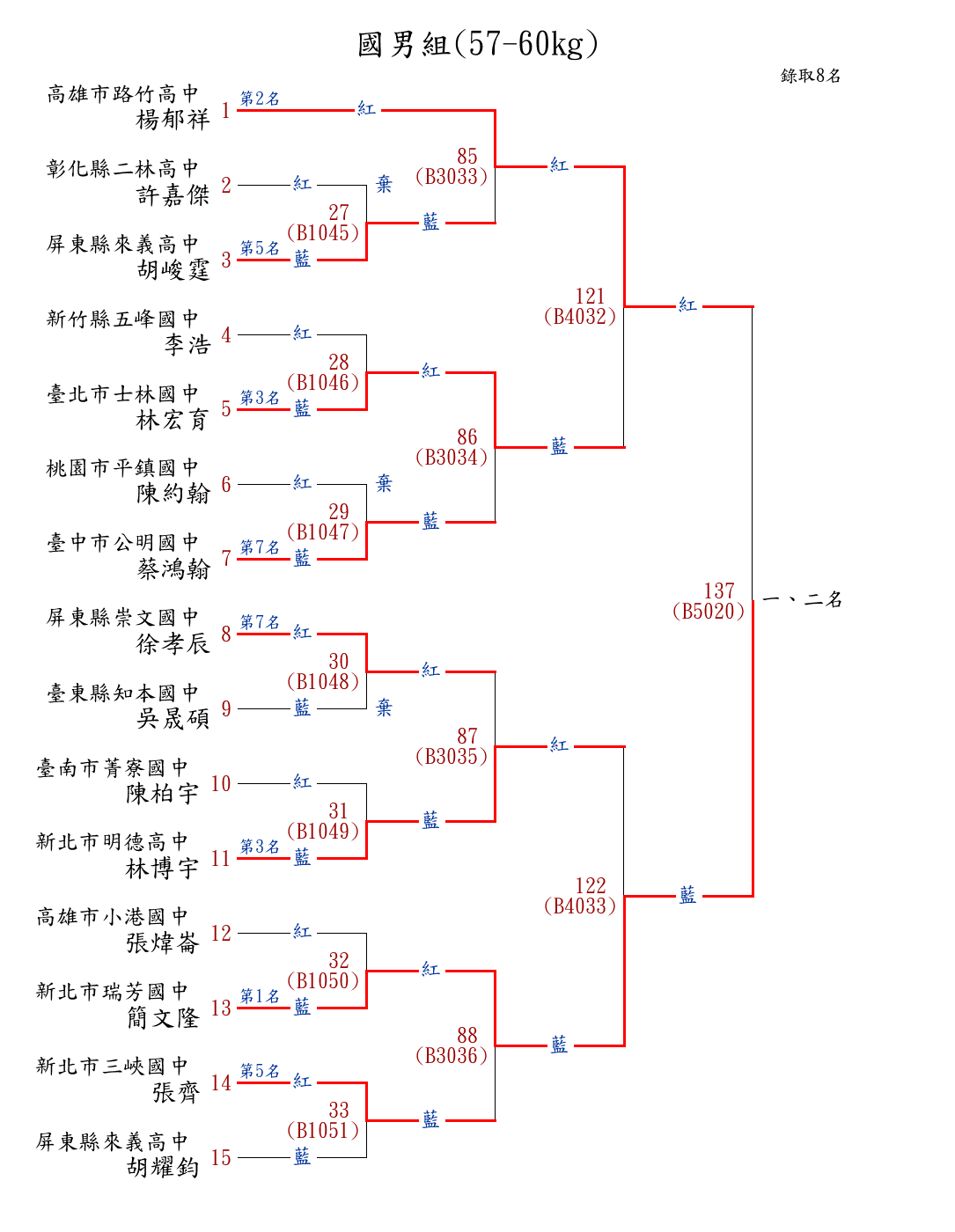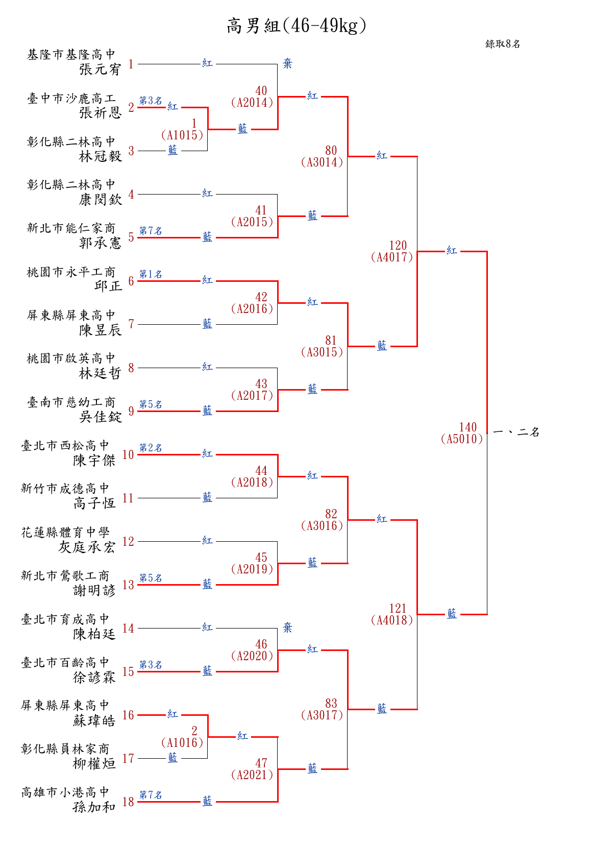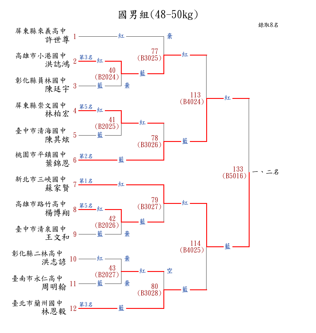 8國男組(46-48kg) ( 12取8 ) 圖 第 1 名[] 新北市鶯歌國中 {新北市鶯歌國中}林晉宇