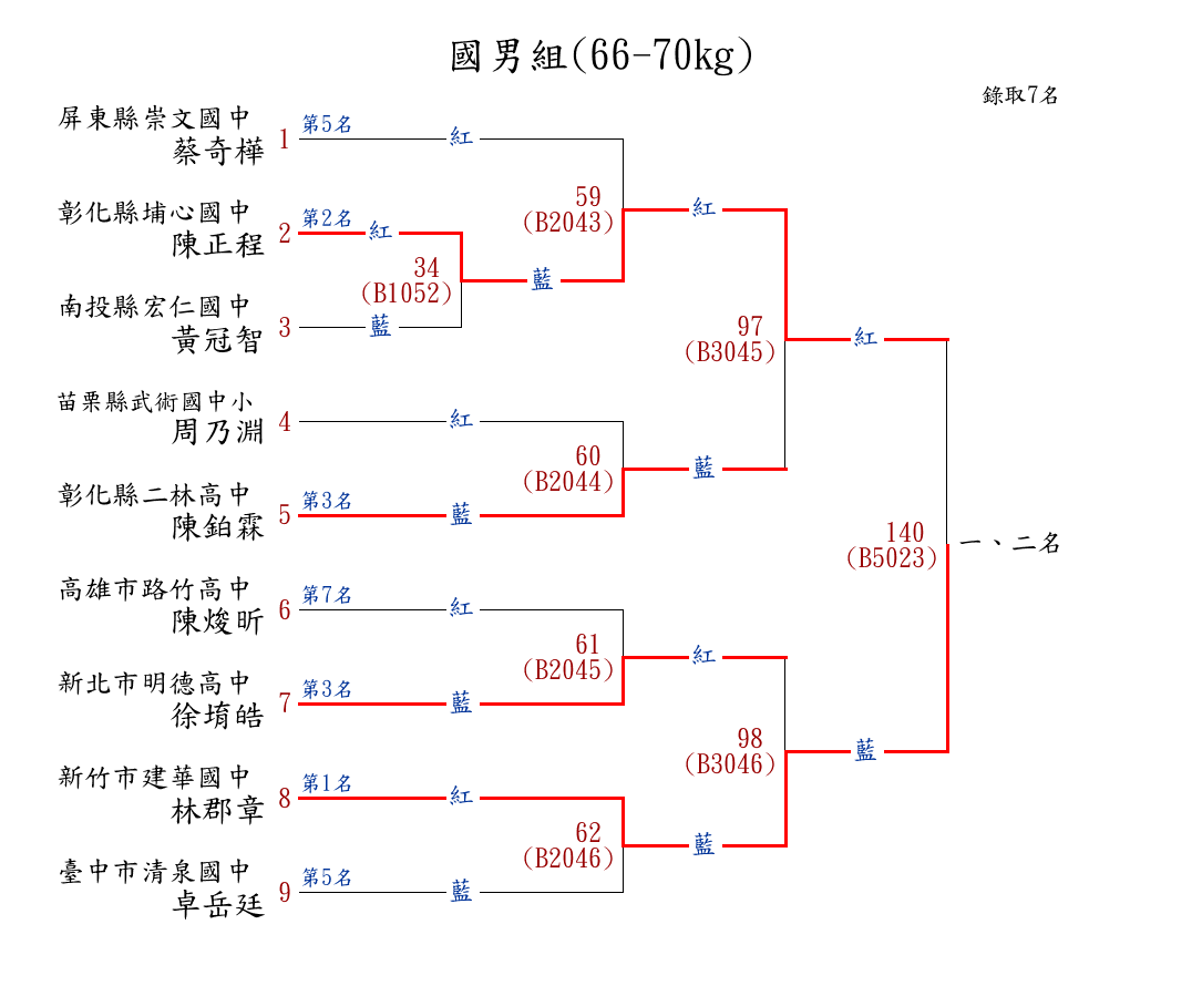 66國男組(66-70kg) ( 9取7 ) 圖 第 1 名[] 新竹市建華國中 {新竹市建華國中}林郡章