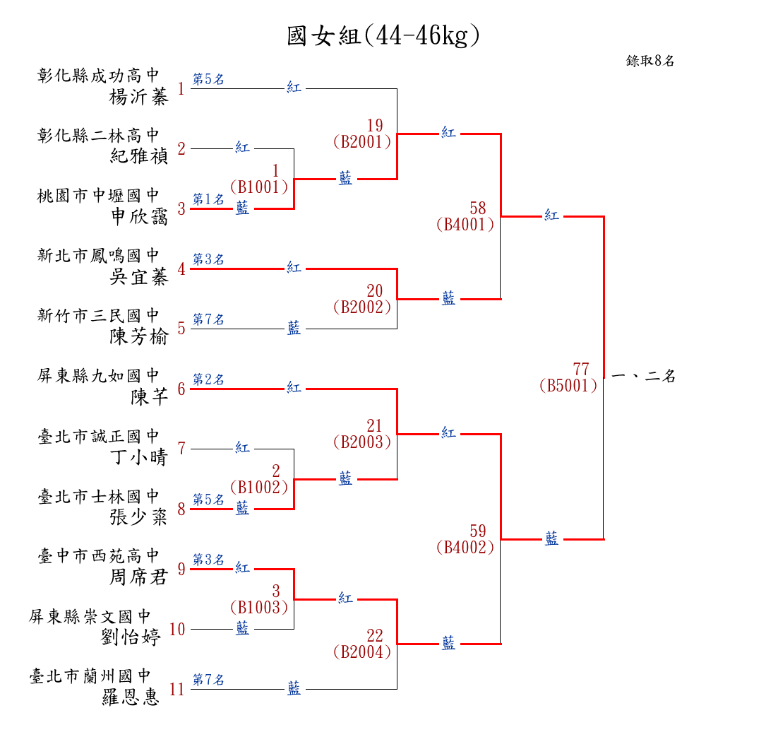 1國男組(44-46kg) ( 12取8 ) 圖 第 1 名[] 新北市明德高中 {新北市明德高中}湯恩峻