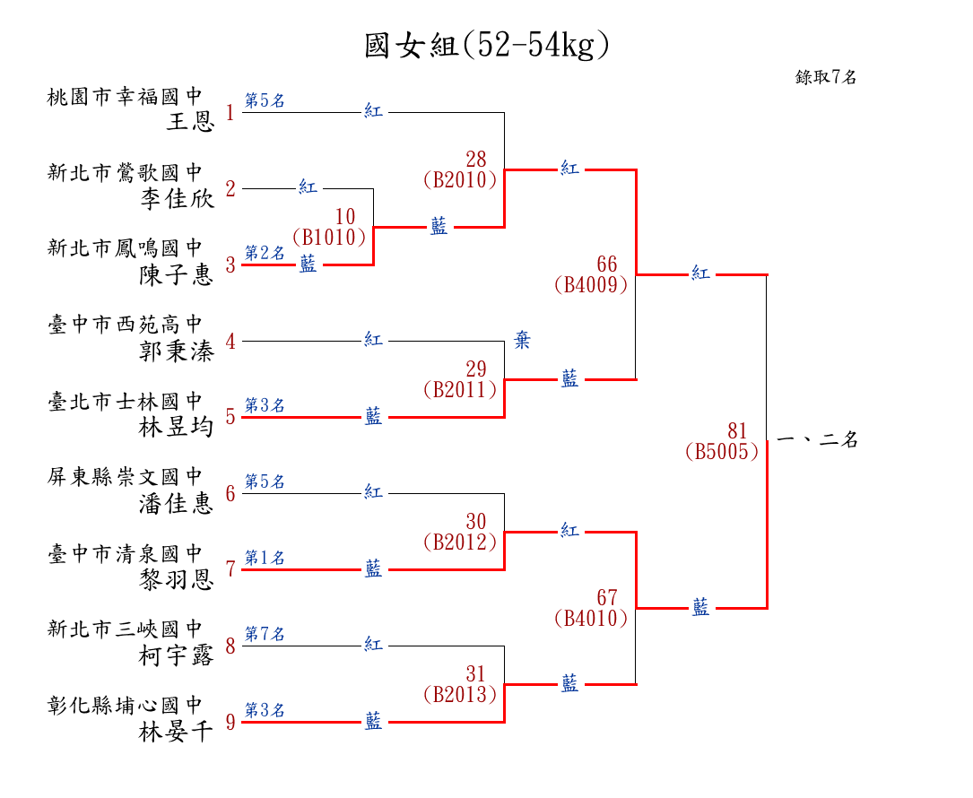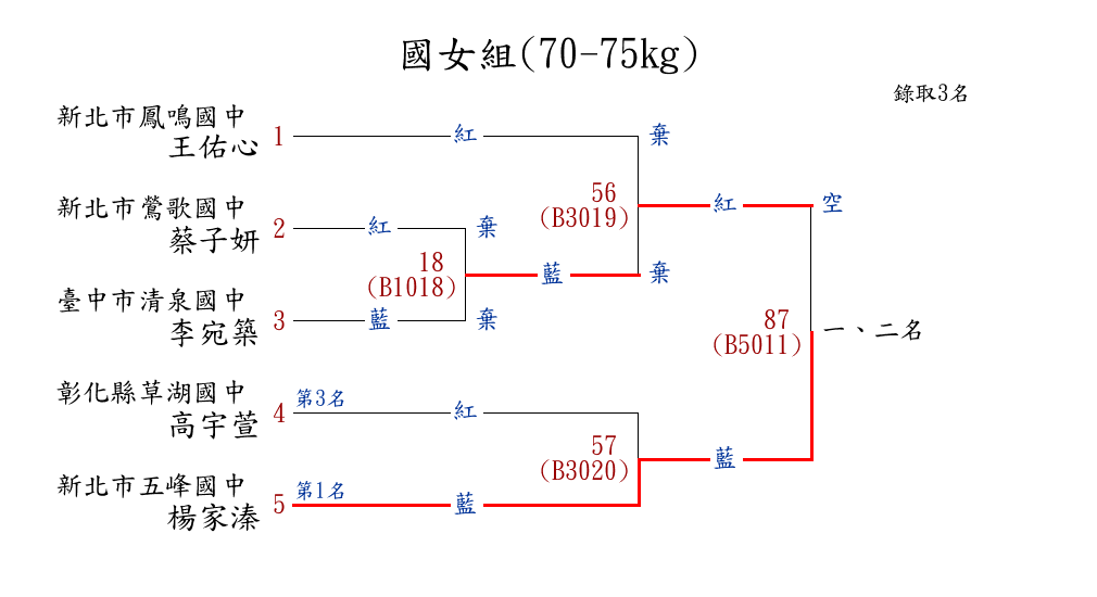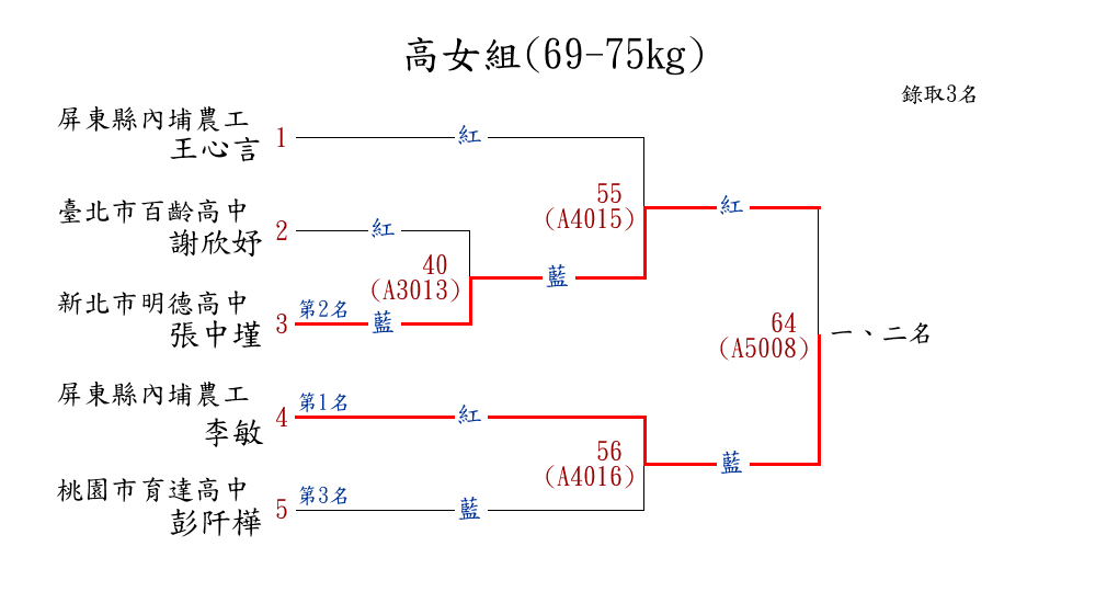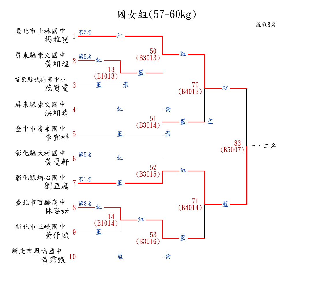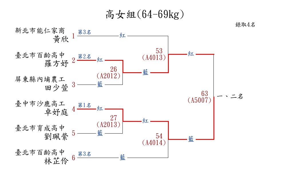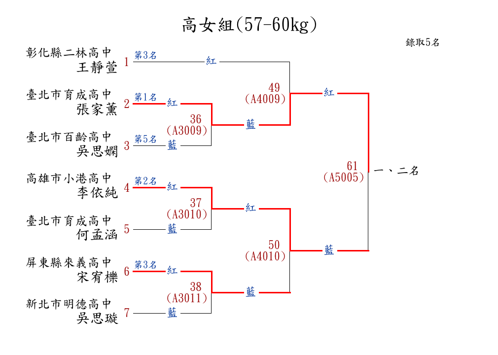 258高女組(57-60kg) ( 7取5 ) 圖 第 1 名[] 臺北市育成高中 {臺北市育成高中}張家薰