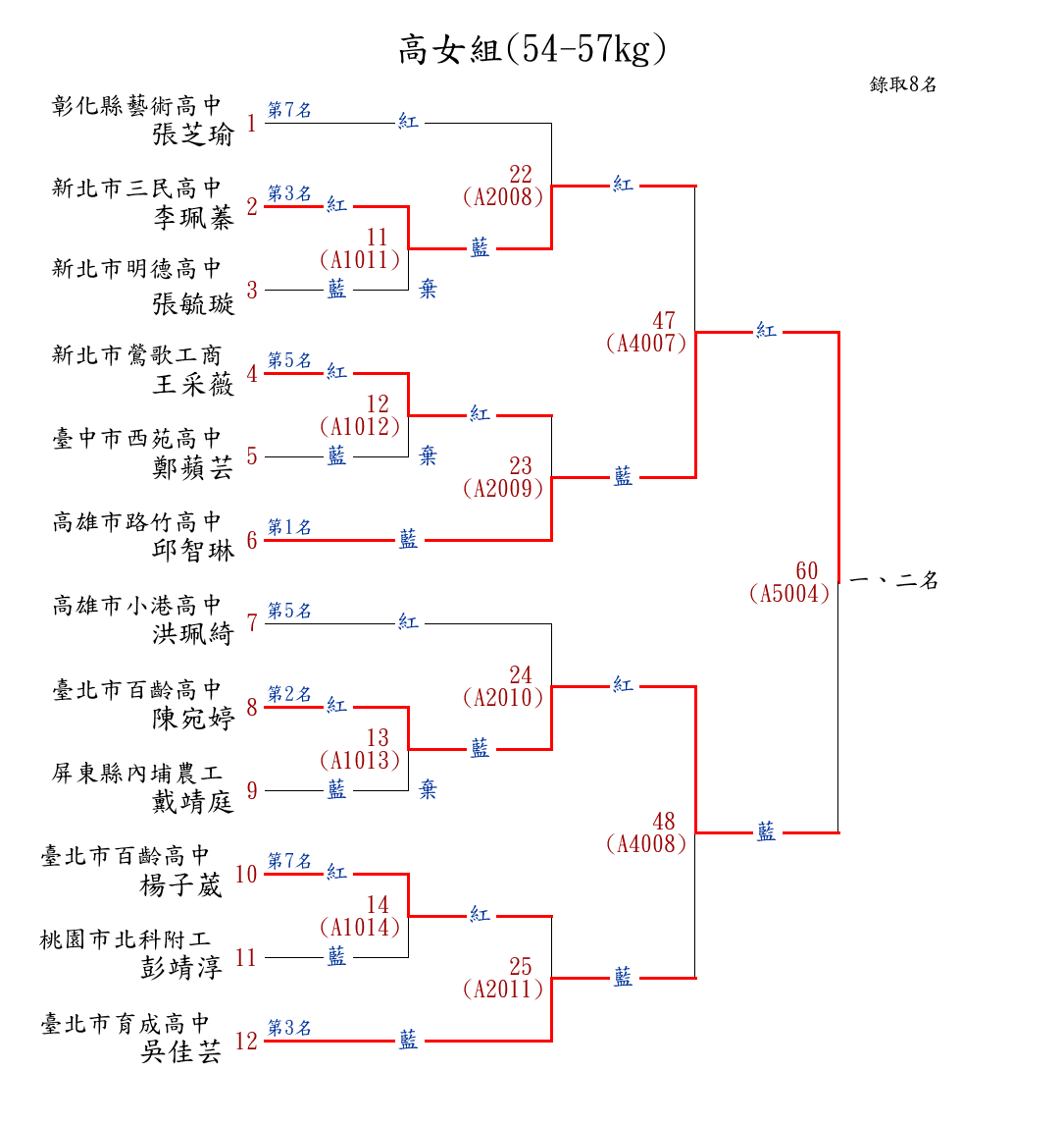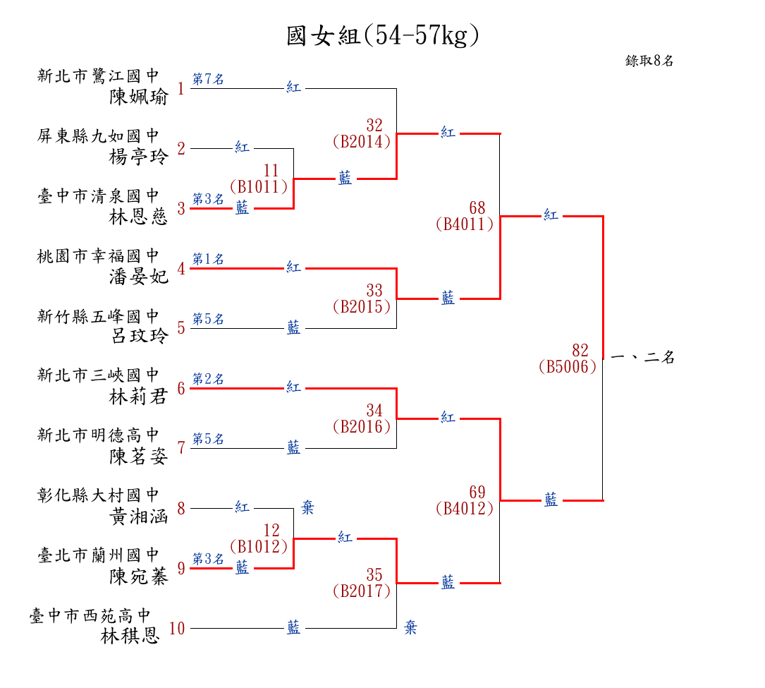 250高女組(54-57kg) ( 12取8 ) 圖 第 1 名[] 高雄市路竹高中 {高雄市路竹高中}邱智琳