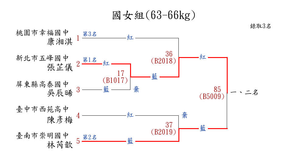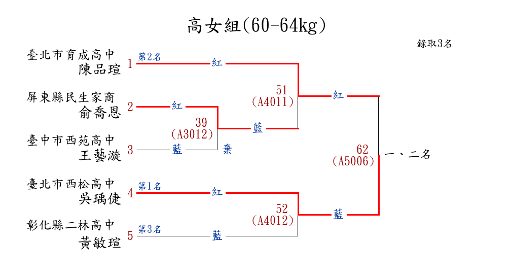 263高女組(60-64kg) ( 5取3 ) 圖 第 1 名[] 臺北市西松高中 {臺北市西松高中}吳瑀倢