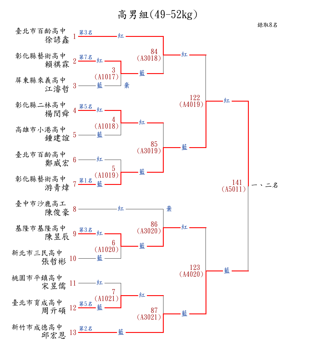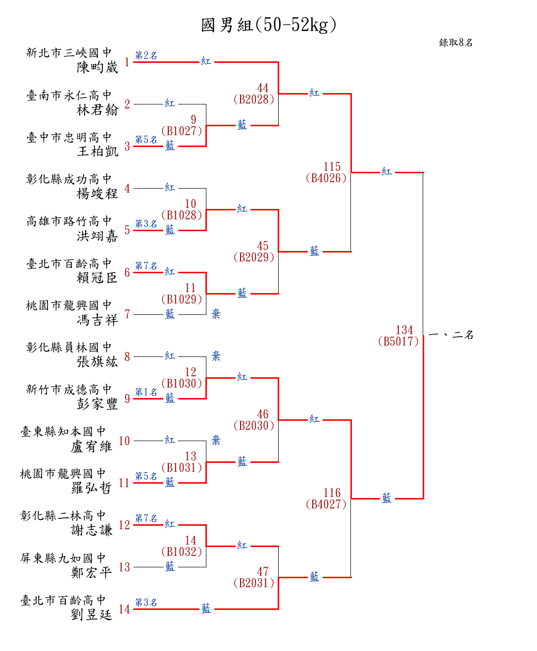 21國男組(50-52kg) ( 14取8 ) 圖 第 1 名[] 新竹市成德高中 {新竹市成德高中}彭家豐