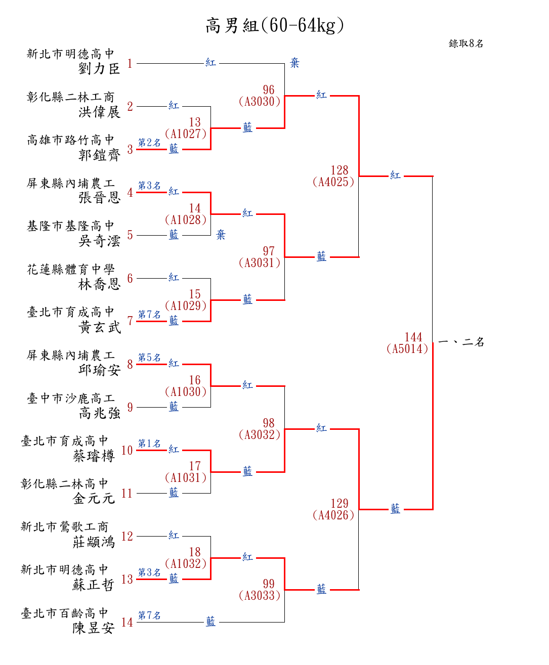 182高男組(60-64kg) ( 14取8 ) 圖 第 1 名[] 臺北市育成高中 {臺北市育成高中}蔡璿樽