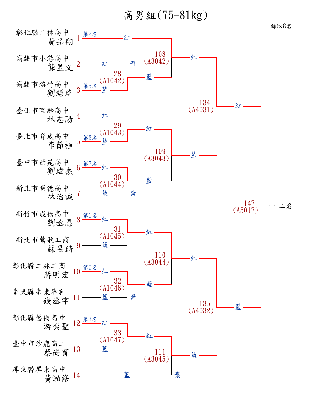 211高男組(81-91kg) ( 14取8 ) 圖 第 1 名[] 彰化縣二林高中 {彰化縣二林高中}洪鈺竣