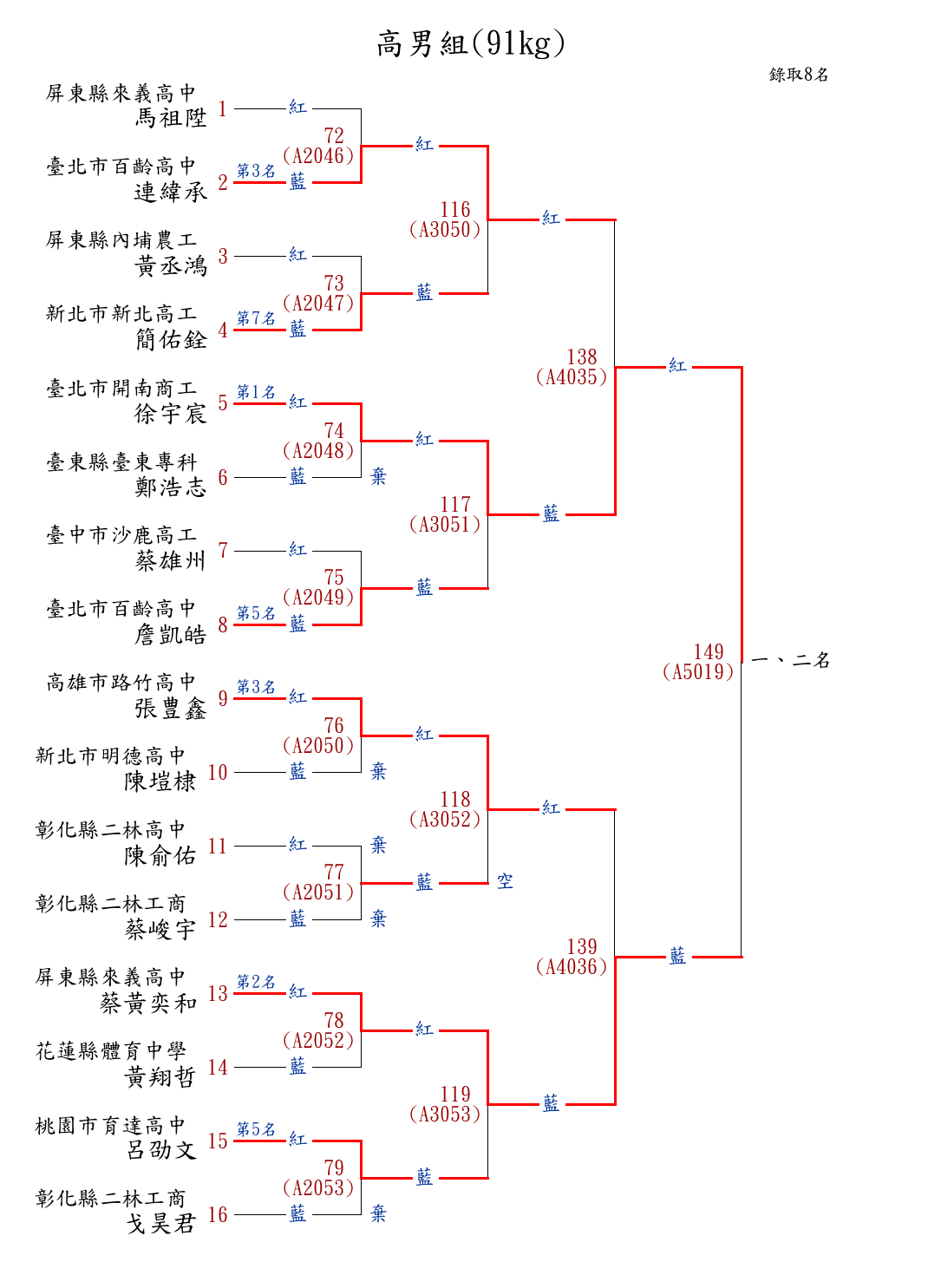 219高男組(91kg) ( 16取8 ) 圖 第 1 名[] 臺北市開南商工 {臺北市開南商工}徐宇宸