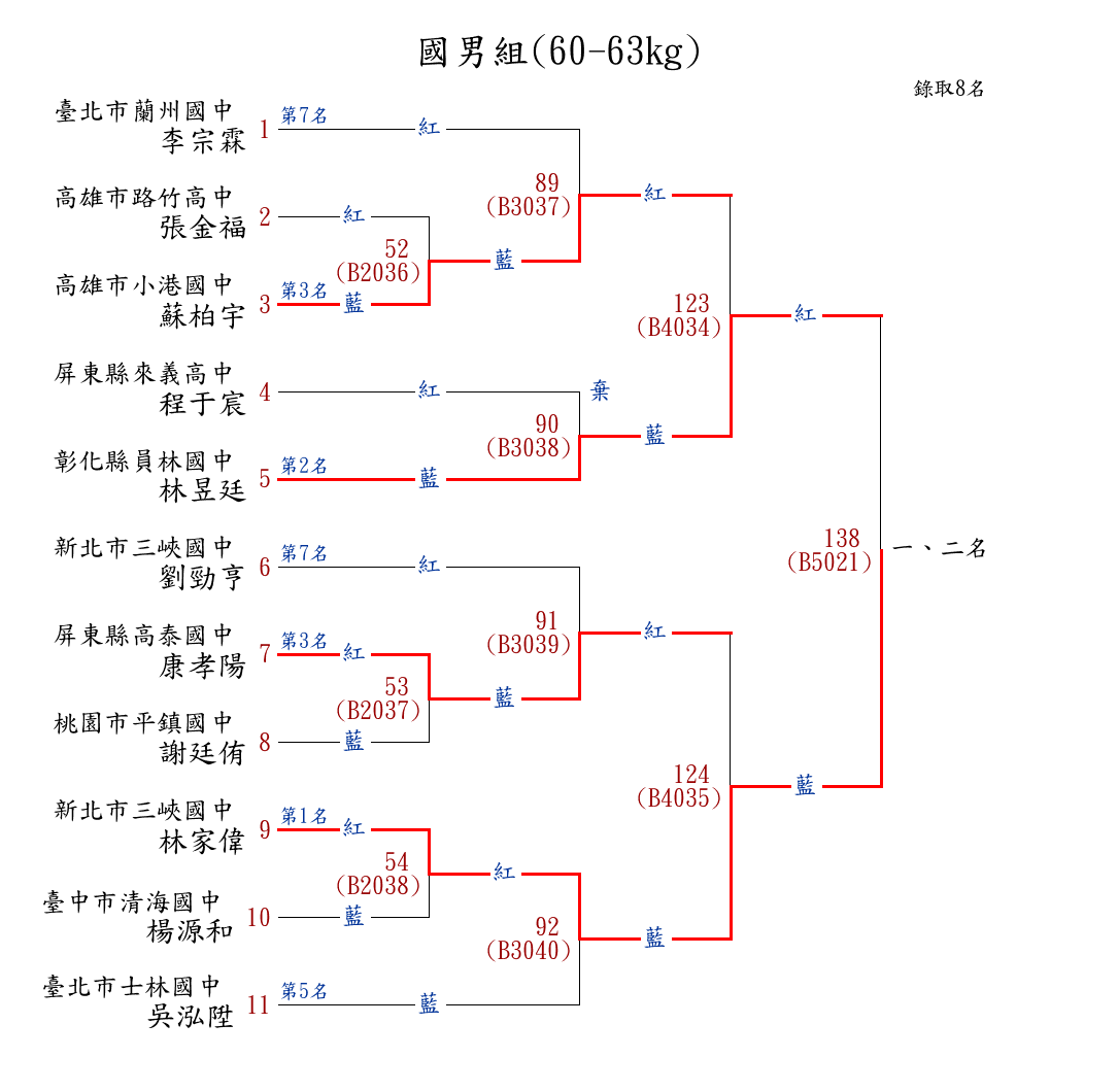 52國男組(60-63kg) ( 11取8 ) 圖 第 1 名[] 新北市三峽國中 {新北市三峽國中}林家偉