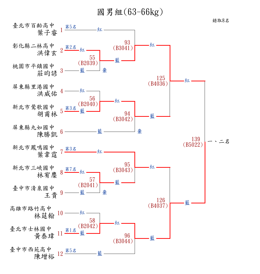 59國男組(63-66kg) ( 12取8 ) 圖 第 1 名[] 臺北市士林國中 {臺北市士林國中}黃泰瑋