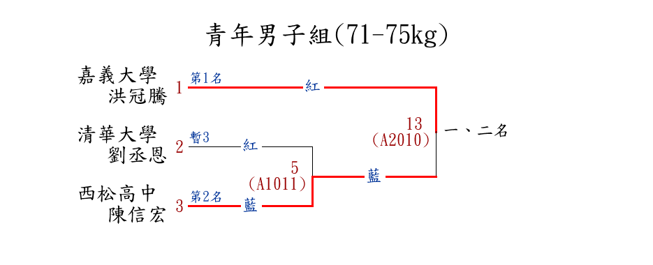 31青年男子組(71-75kg) ( 3取0 ) 圖 第 1 名[] 嘉義大學 {國立嘉義大學}洪冠騰