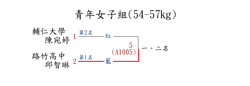 10青年女子組(54-57kg) ( 2取0 ) 圖 第 1 名[] 路竹高中 {高雄市路竹高級中學}邱智琳