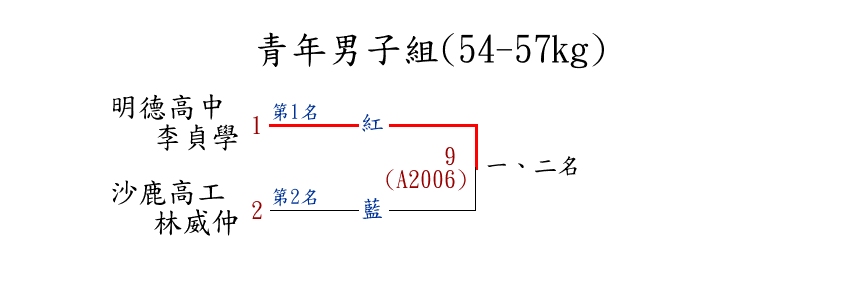 21青年男子組(54-57kg) ( 2取0 ) 圖 第 1 名[] 明德高中 {明德高中}李貞學
