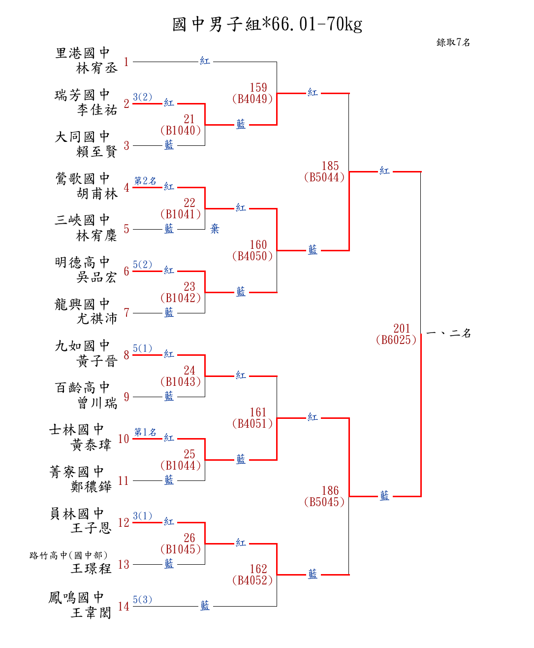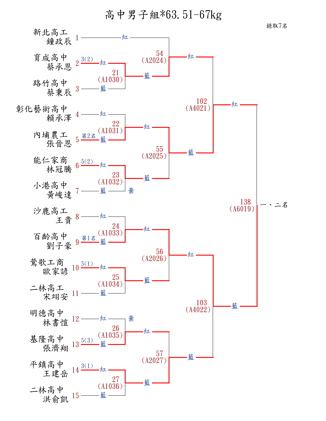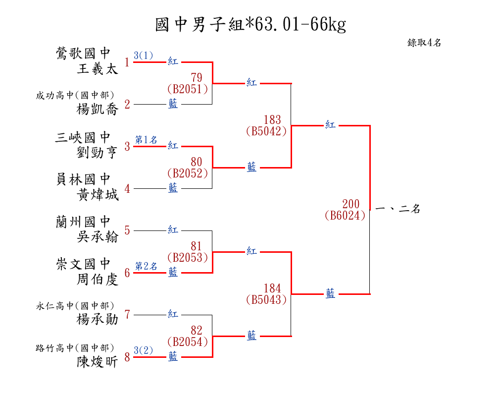 | 250 | 高中男子組*67.01-71kg ( 11取5 ) 圖 | 第 1 名 | [] 明德高中 {新北市立明德高中} | 陳峰 | |