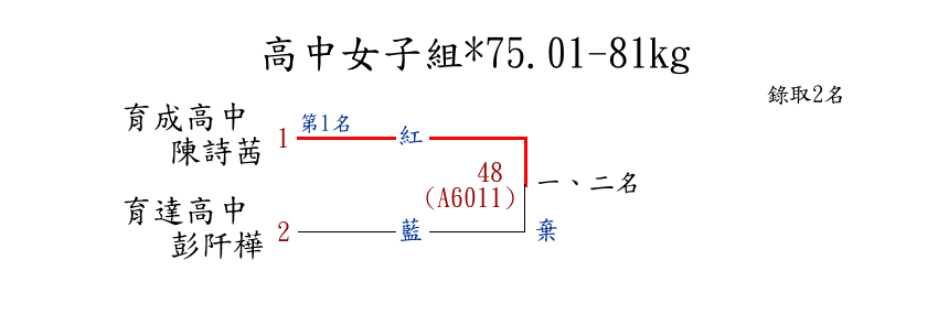 | 56 | 國中女子組*75.01-80kg ( 4取4 ) 圖 | 第 1 名 | [] 三峽國中 {新北市三峽國中} | 曾安婍 | |