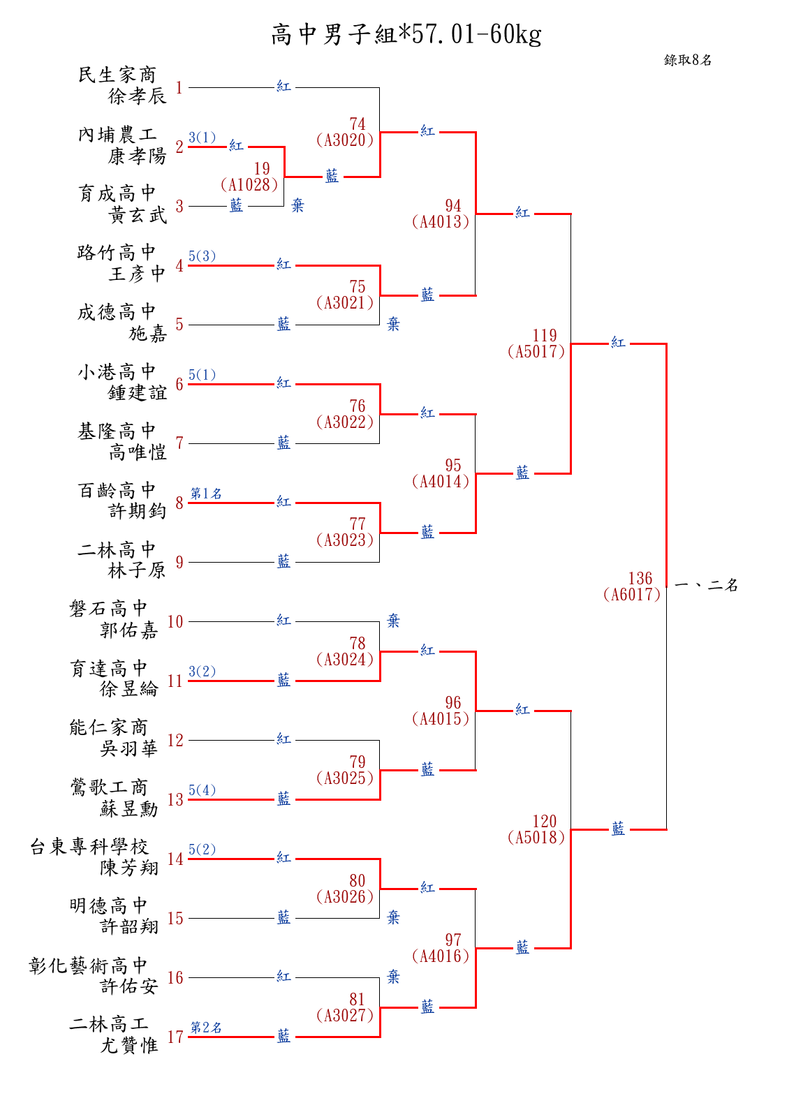| 272 | 高中男子組*92kg+ ( 7取4 ) 圖 | 第 1 名 | [] 開南高中 {開南高中} | 徐宇宸 | |