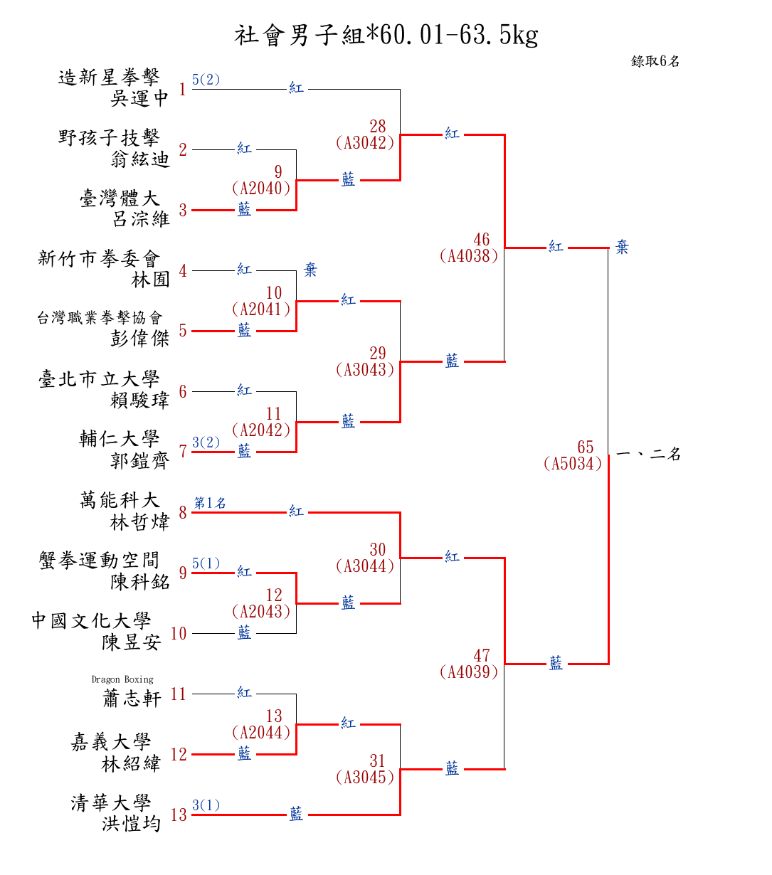 | 320 | 社會男子組*60.01-63.5kg ( 13取6 ) 圖 | 第 1 名 | [] 萬能科大 {萬能科大} | 林哲煒 | |