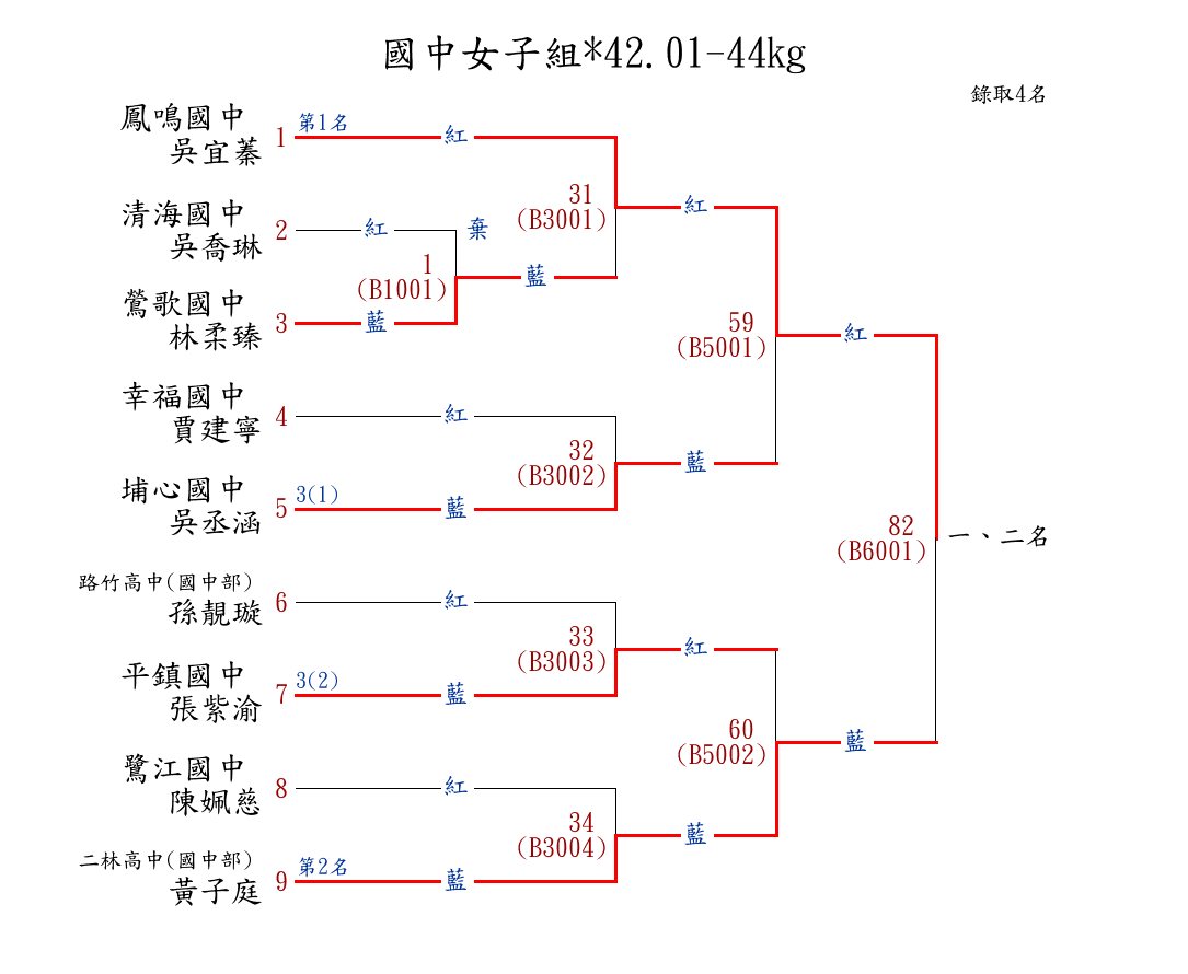 B1005 比賽結束國中女子組*44.01-46㎏ 圖 #5 二林高中(國中部) - 陳詩璇 勝鷺江國中 - 張紜慈(棄)