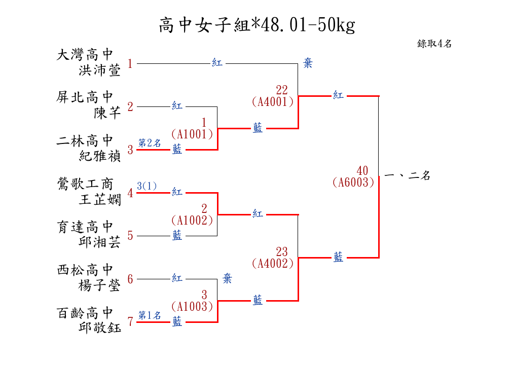 A1003 比賽結束高中女子組*48.01-50kg 圖 #3 西松高中 - 楊子瑩(棄)百齡高中 - 邱敬鈺 勝