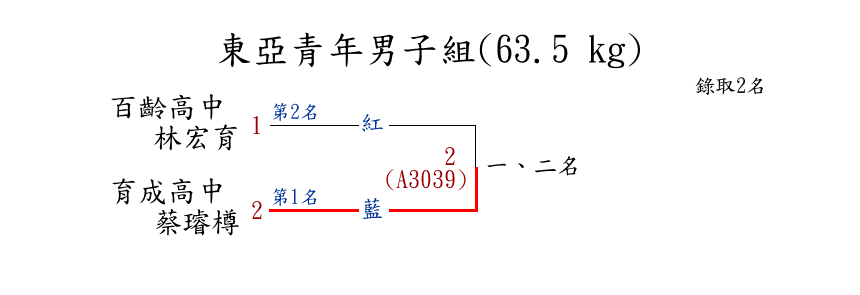 1東亞青年男子組(63.5 kg) ( 2取2 ) 圖 第 1 名[育成] 育成高中 {臺北市立育成高級中學}蔡璿樽