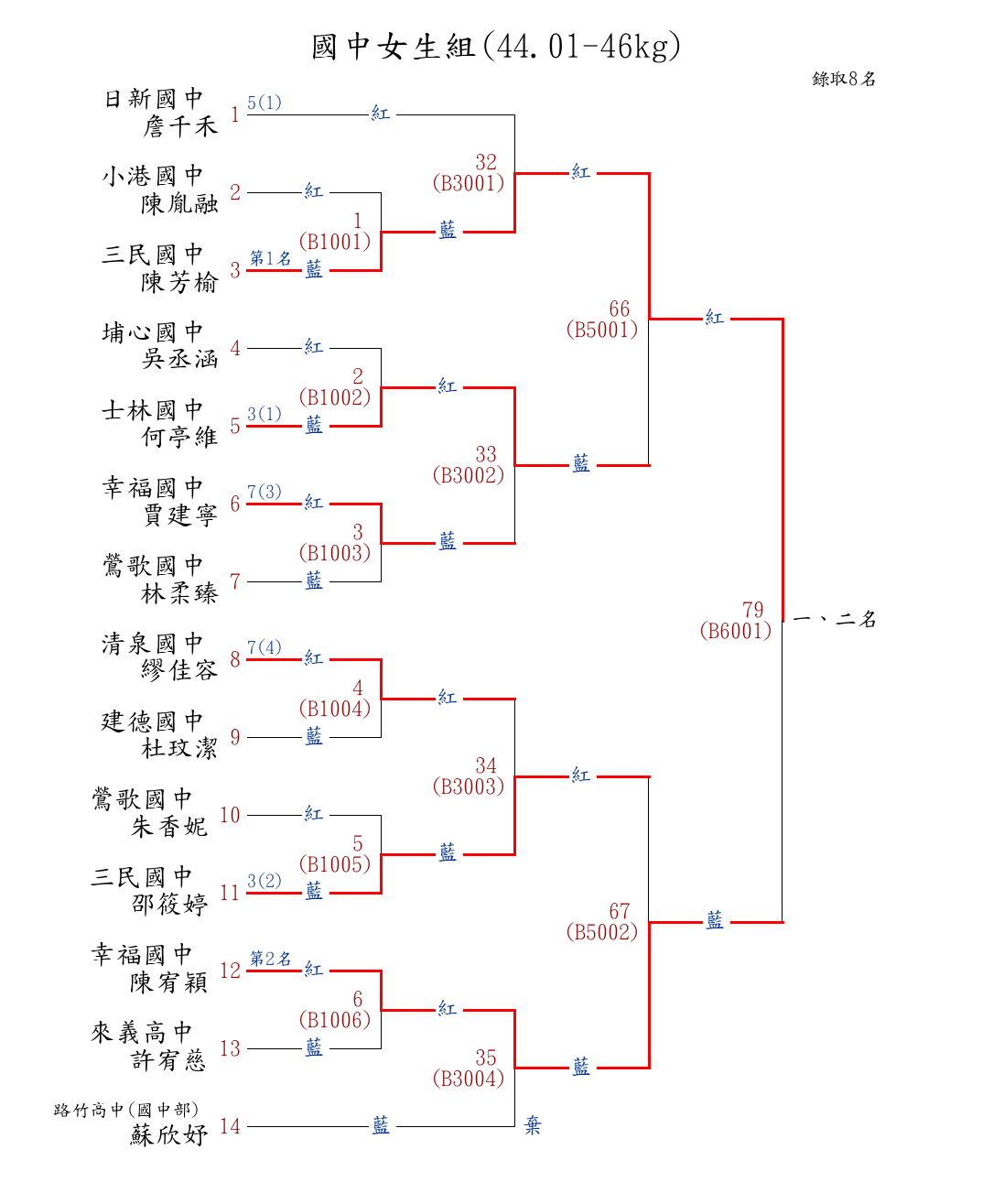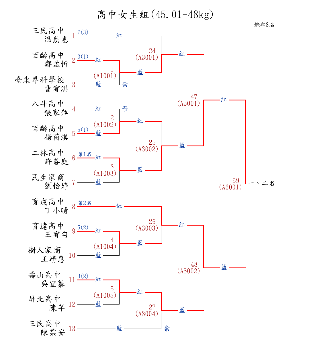 | 1 | 高中女生組(45.01-48kg) ( 13取8 ) 圖 | 第 1 名 | [二林] 二林高中 {彰化縣縣立二林高中} | 許善庭 | |