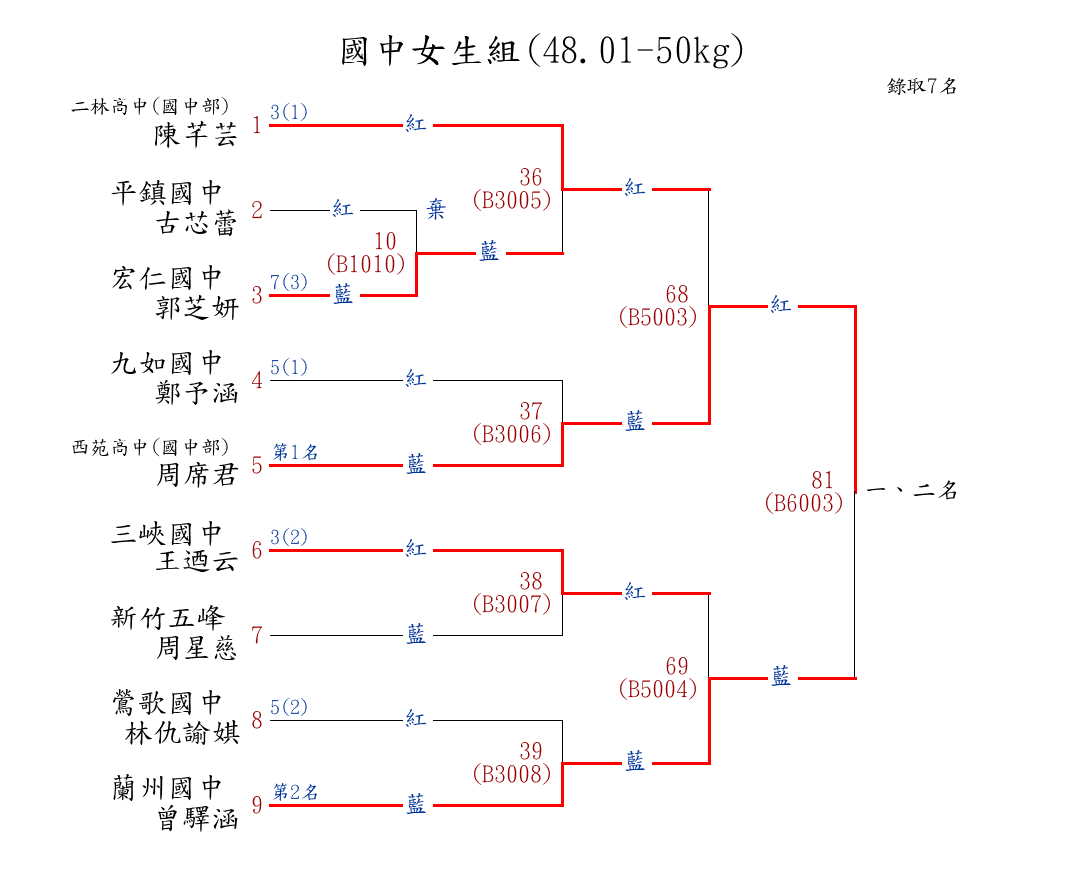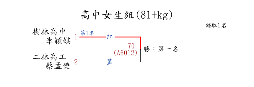 | 50 | 高中女生組(81+kg) ( 2取1 ) 圖 | 第 1 名 | [樹林] 樹林高中 {新北市市立樹林高中} | 李穎娸 | |