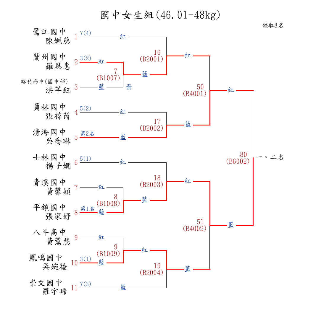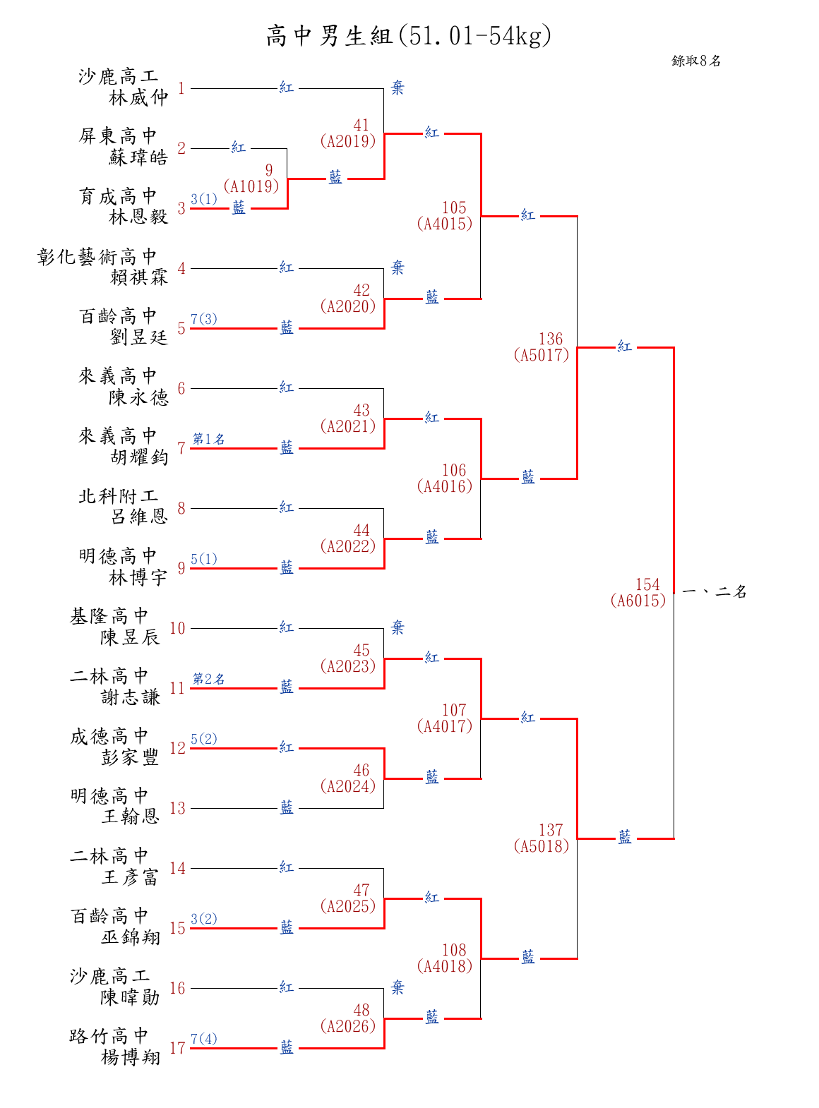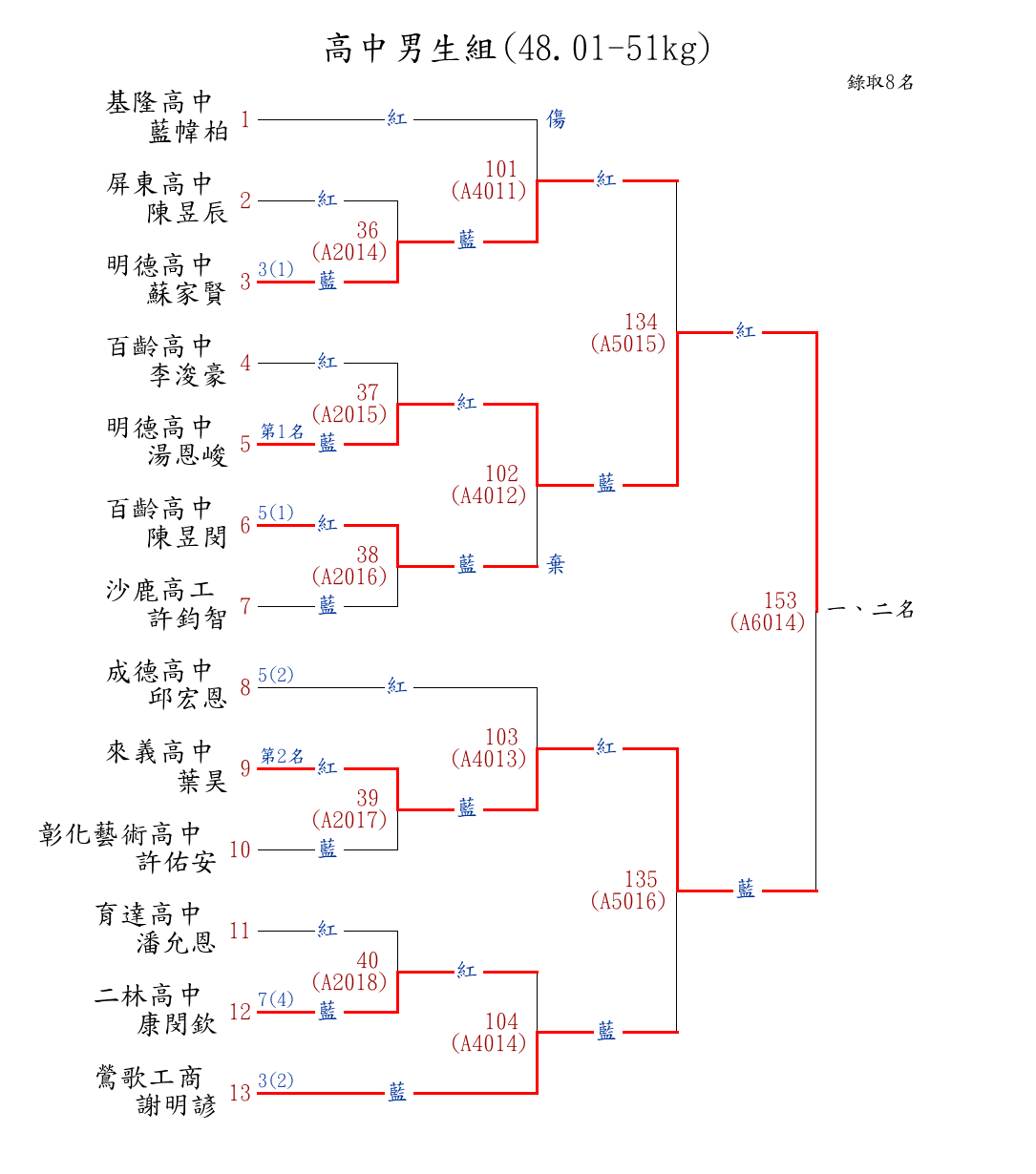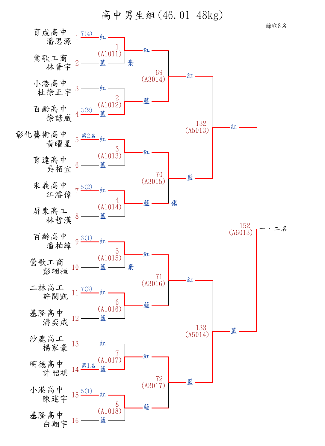| 51 | 高中男生組(46.01-48kg) ( 16取8 ) 圖 | 第 1 名 | [明德] 明德高中 {新北市市立明德高中} | 許韶祺 | |