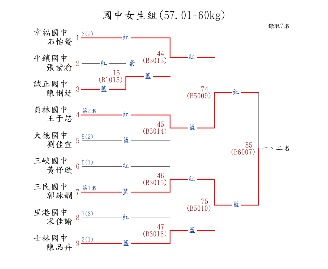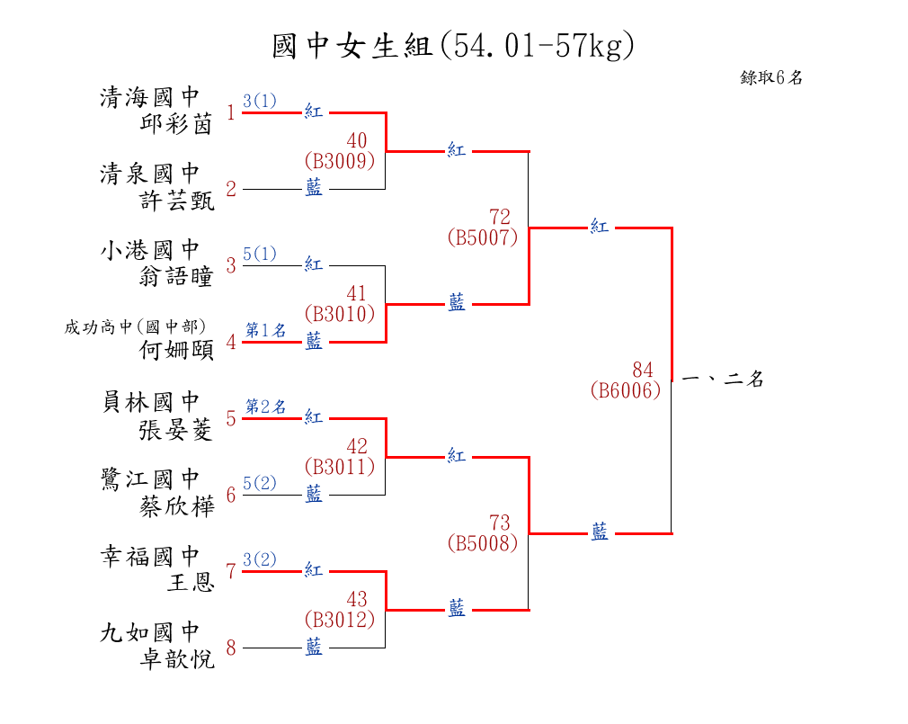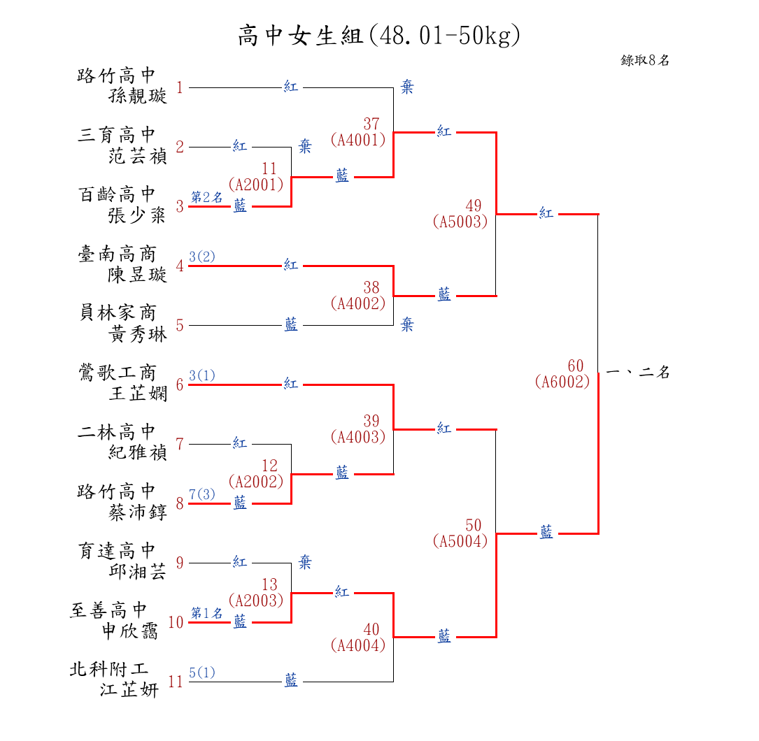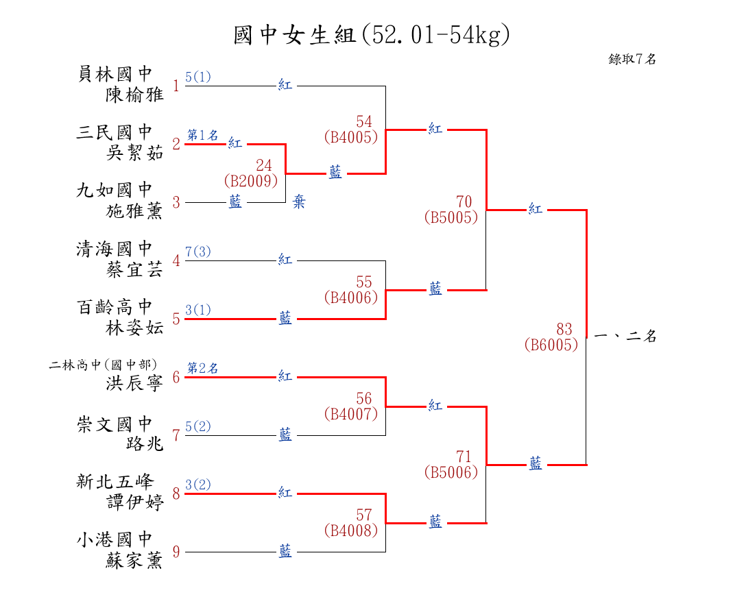 | 20 | 高中女生組(52.01-54kg) ( 11取8 ) 圖 | 第 1 名 | [鶯工] 鶯歌工商 {新北市市立鶯歌工商} | 王采薇 | |