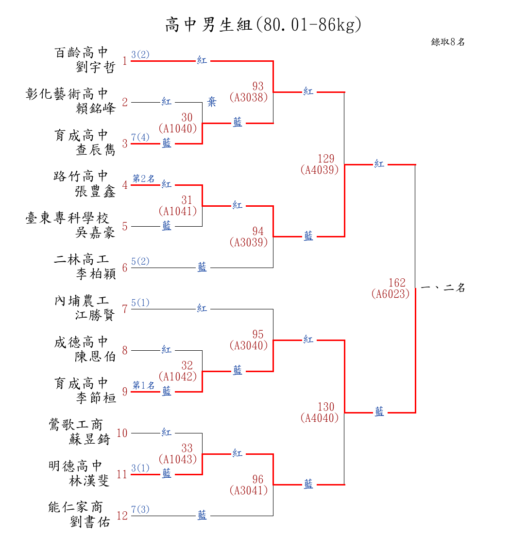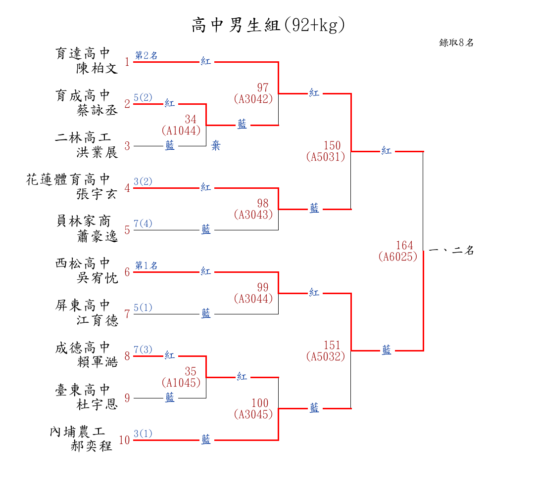 | 90 | 高中男生組(60.01-63.5kg) ( 14取8 ) 圖 | 第 1 名 | [育成] 育成高中 {臺北市市立育成高中} | 蔡璿樽 | |