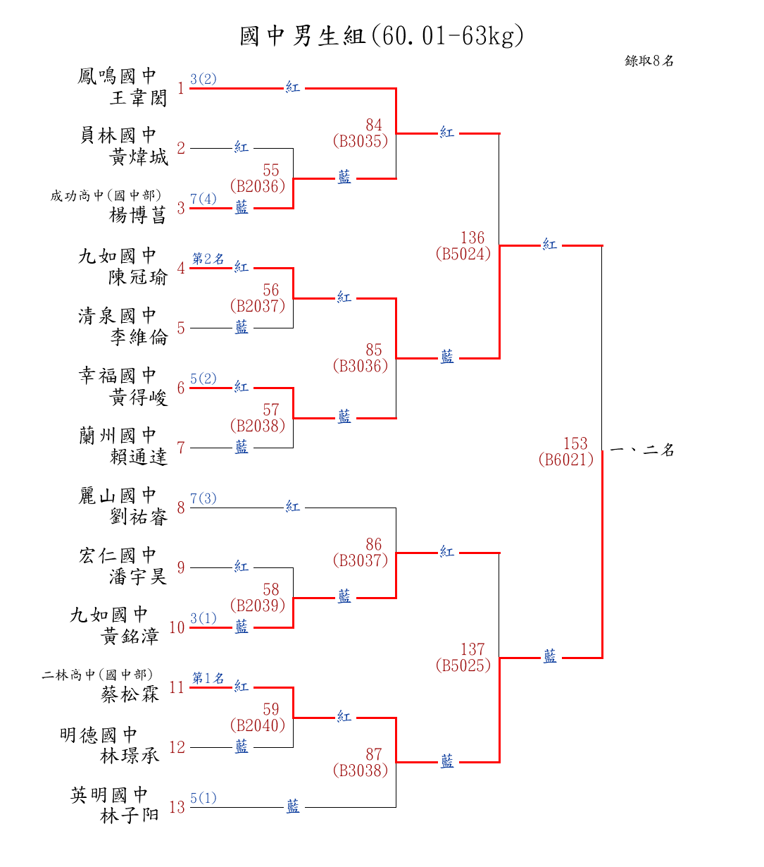 | 270 | 國中男生組(60.01-63kg) ( 13取8 ) 圖 | 第 1 名 | [二林] 二林高中(國中部) {彰化縣縣立二林高中} | 蔡松霖 | |