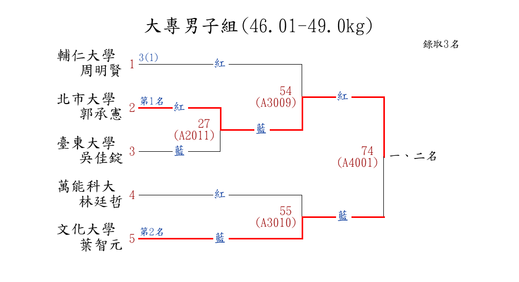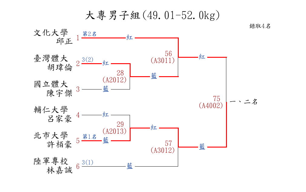 26大專男子組(49.01-52.0kg) ( 6取4 ) 圖 第 1 名[北市U] 北市大學 {臺北市立大學}許栢豪
