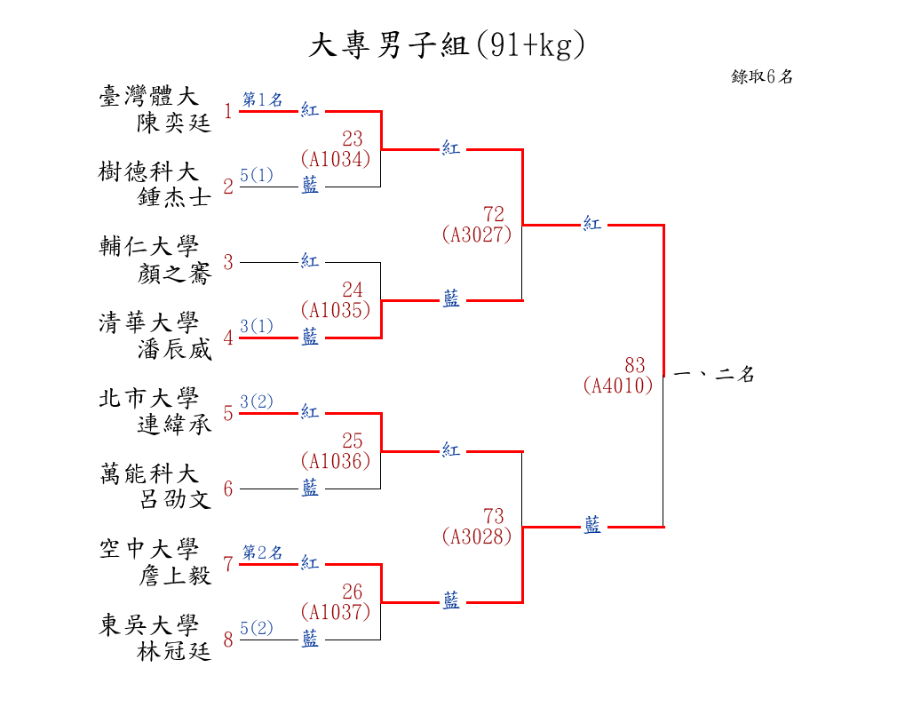 79大專男子組(91+kg) ( 8取6 ) 圖 第 1 名[臺體] 臺灣體大 {國立臺灣體育運動大學}陳奕廷