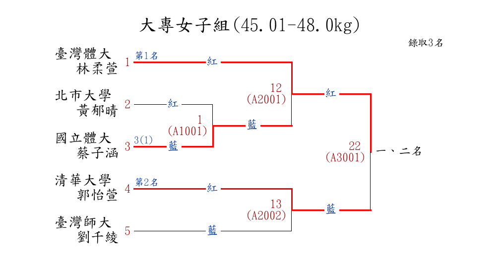 1大專女子組(45.01-48.0kg) ( 5取3 ) 圖 第 1 名[臺體] 臺灣體大 {國立臺灣體育運動大學}林柔萱