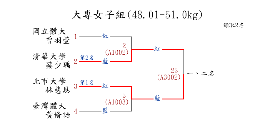 4大專女子組(48.01-51.0kg) ( 4取2 ) 圖 第 1 名[北市U] 北市大學 {臺北市立大學}林慈恩