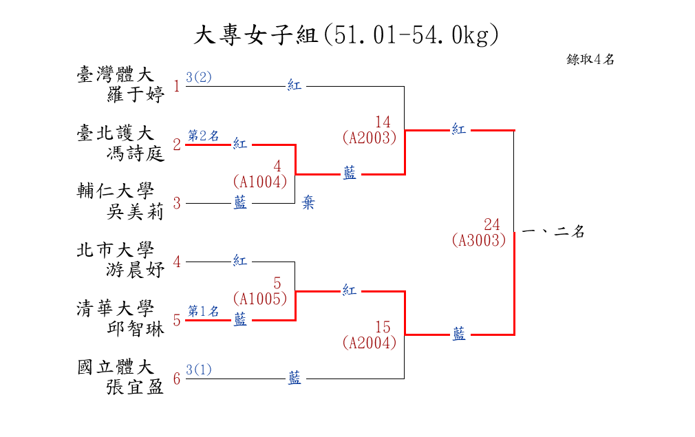 6大專女子組(51.01-54.0kg) ( 6取4 ) 圖 第 1 名[清華] 清華大學 {國立清華大學}邱智琳