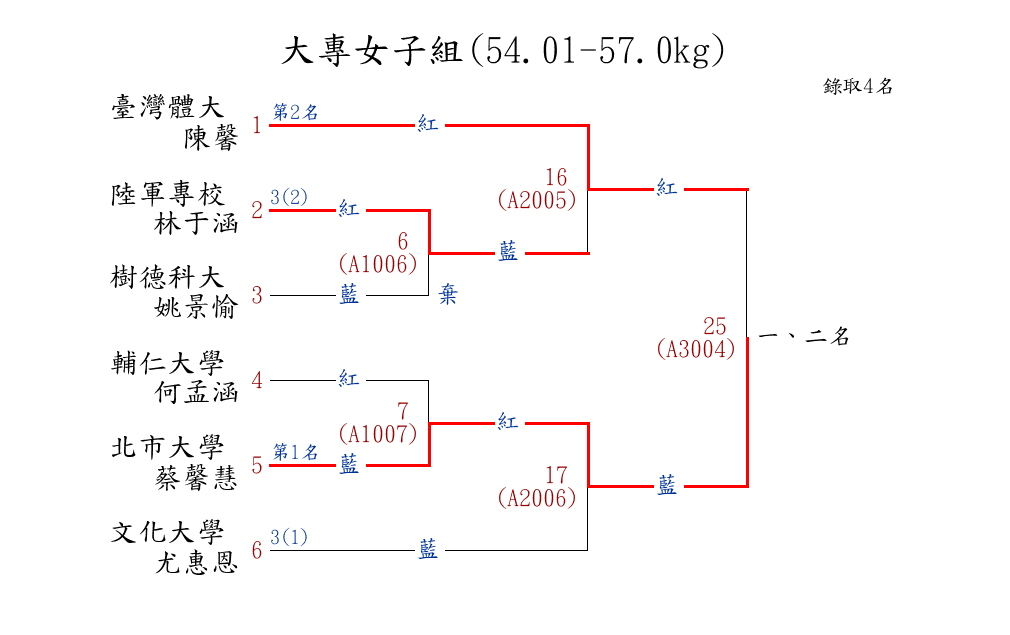 17大專女子組(60.01-64.0kg) ( 6取4 ) 圖 第 1 名[輔仁] 輔仁大學 {輔仁大學}林郁婷