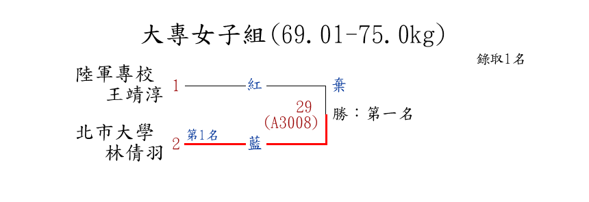 21大專女子組(64.01-69.0kg) ( 3取1 ) 圖 第 1 名[臺體] 臺灣體大 {國立臺灣體育運動大學}李敏