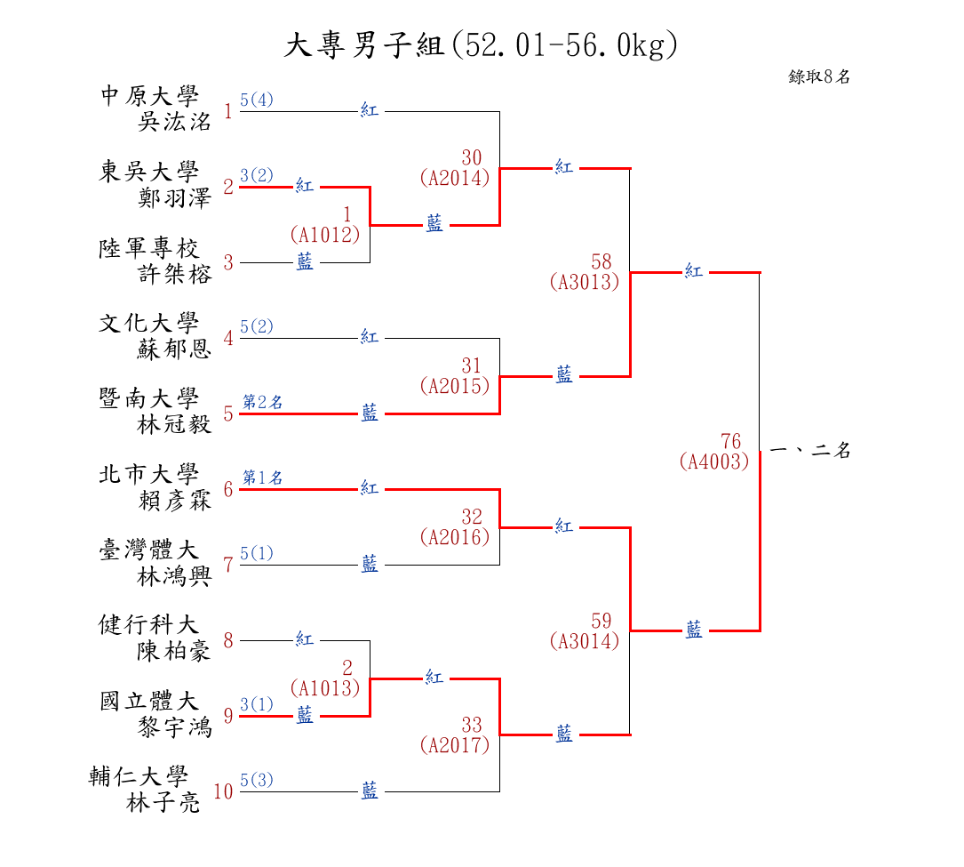 30大專男子組(52.01-56.0kg) ( 10取8 ) 圖 第 1 名[北市U] 北市大學 {臺北市立大學}賴彥霖