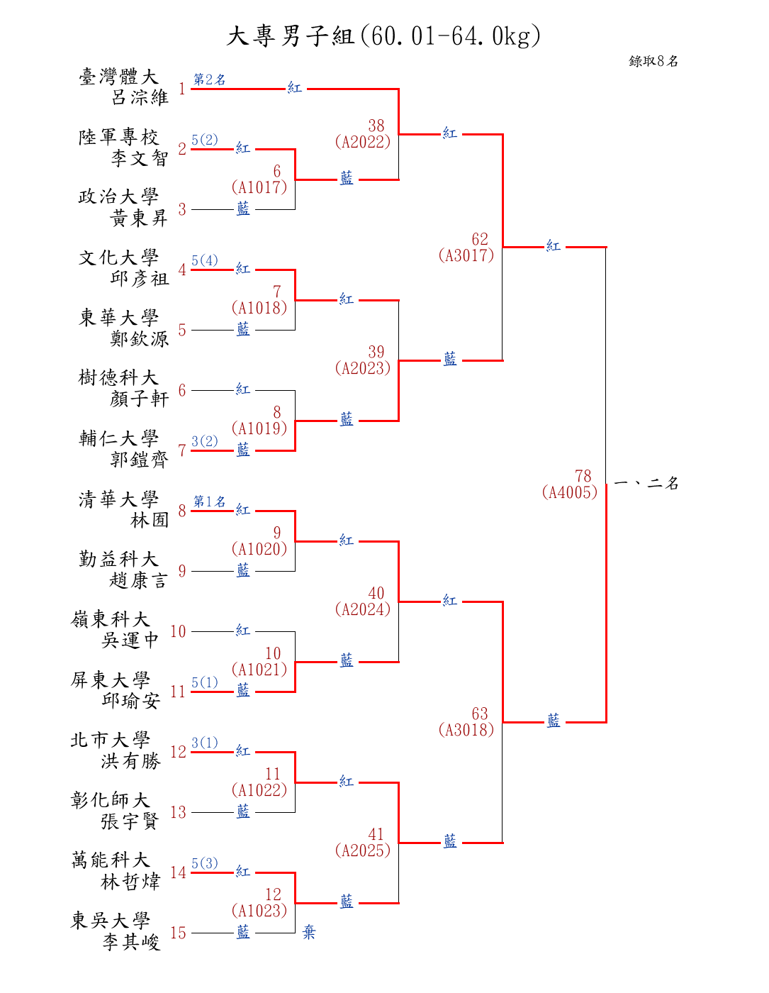 45大專男子組(60.01-64.0kg) ( 15取8 ) 圖 第 1 名[清華] 清華大學 {國立清華大學}林囿