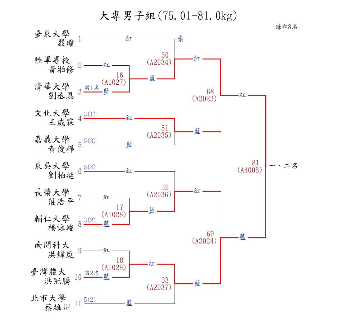 67大專男子組(75.01-81.0kg) ( 11取8 ) 圖 第 1 名[清華] 清華大學 {國立清華大學}劉丞恩