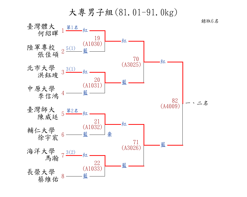 74大專男子組(81.01-91.0kg) ( 8取6 ) 圖 第 1 名[臺體] 臺灣體大 {國立臺灣體育運動大學}何紹暉