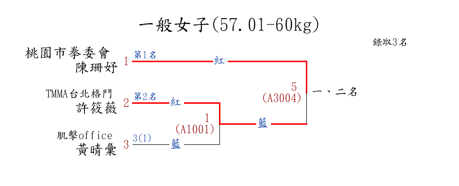 A1001 比賽結束一般女子(57.01-60kg) 圖 #1 TMMA台北格鬥 - 許筱薇 勝 肌擊office - 黃晴彙   敗:第三名