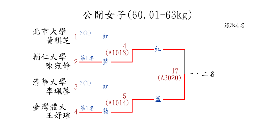 A1014 比賽結束公開女子(60.01-63kg) 圖 #5 清華大學 - 李珮蓁 臺灣體大 - 王妤瑄 勝   敗:第三名