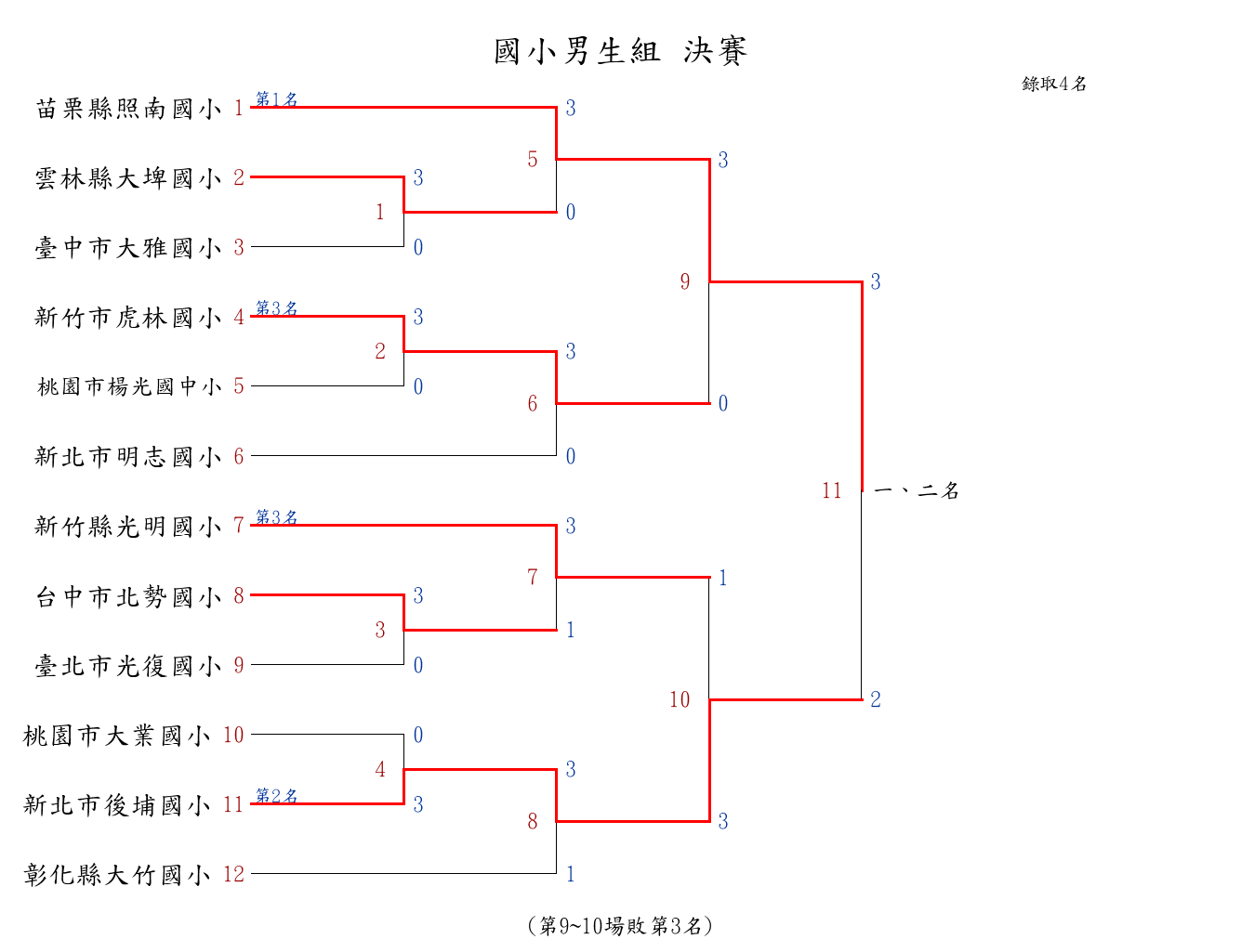 分組預賽+單敗淘汰 國小男生組 18隊,選 4名