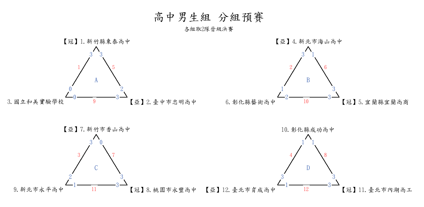 分組預賽+單敗淘汰 高中男生組 12隊,選 4名