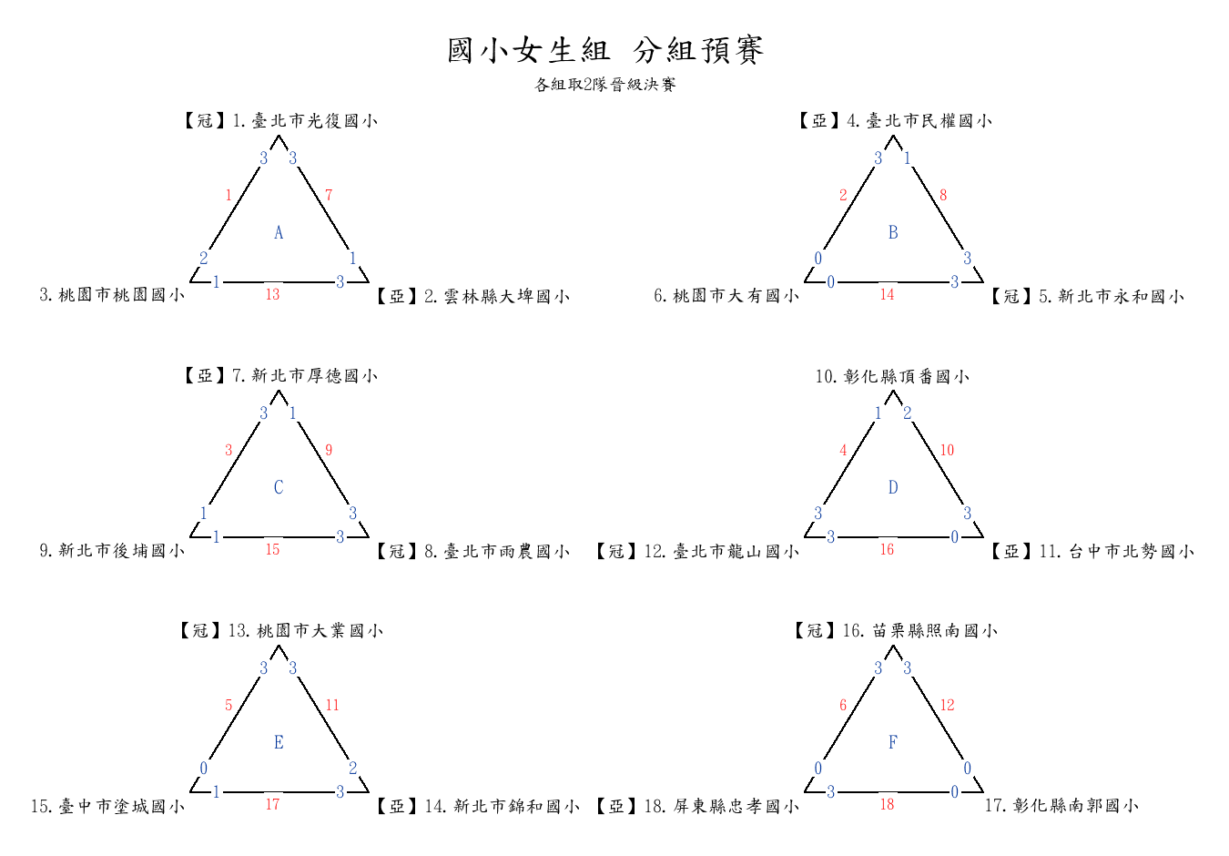 分組預賽+單敗淘汰 國小女生組 18隊,選 4名