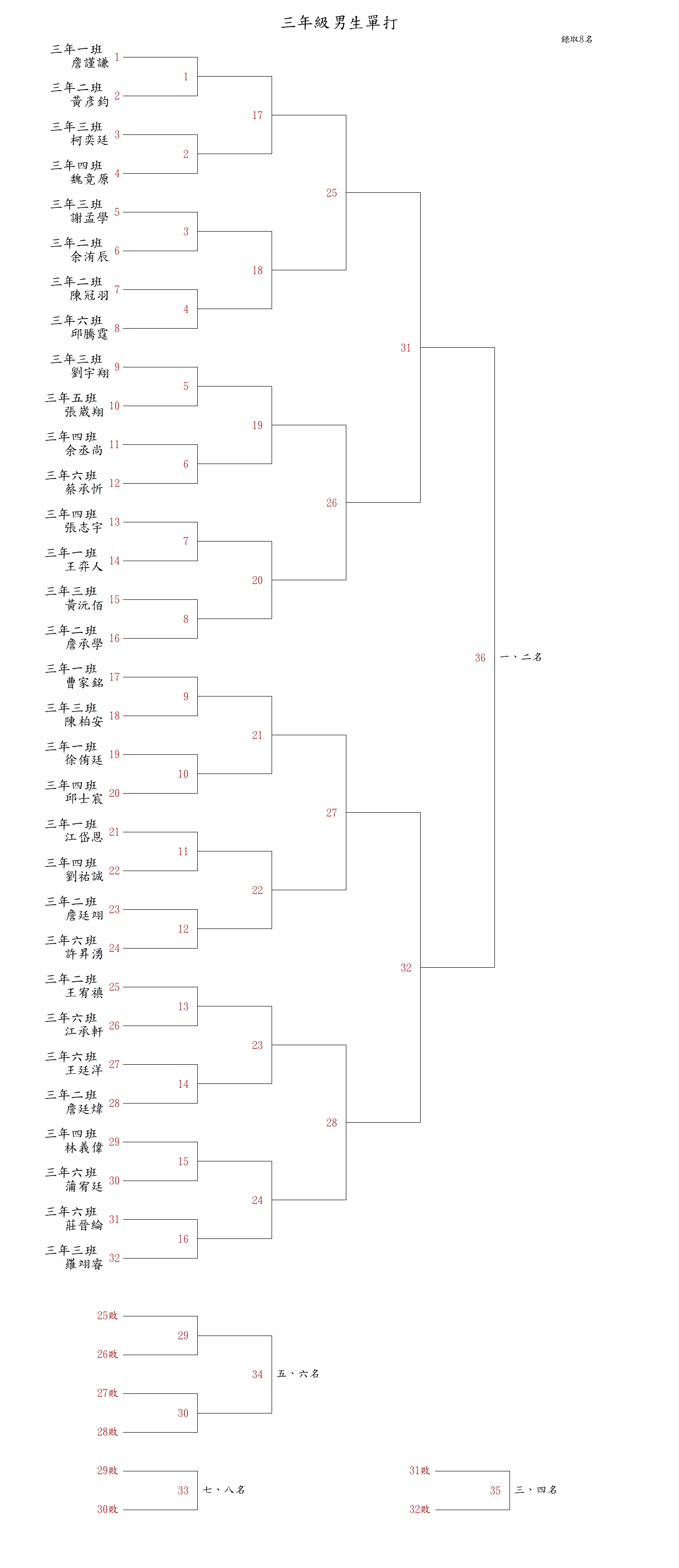 1 資料表尚未定義 三年級男生單打 單敗淘汰32 8