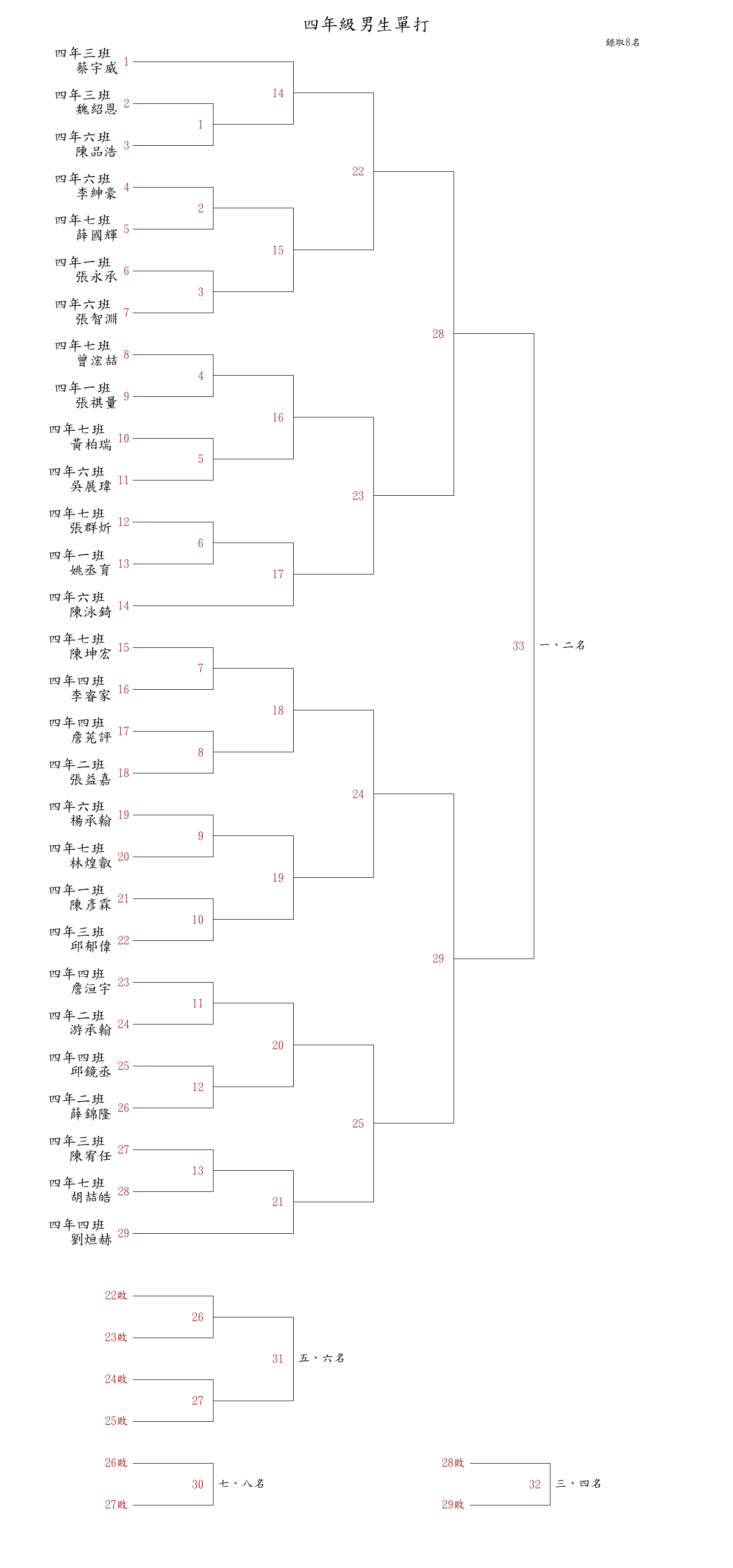 2 資料表尚未定義 四年級男生單打 單敗淘汰29 8