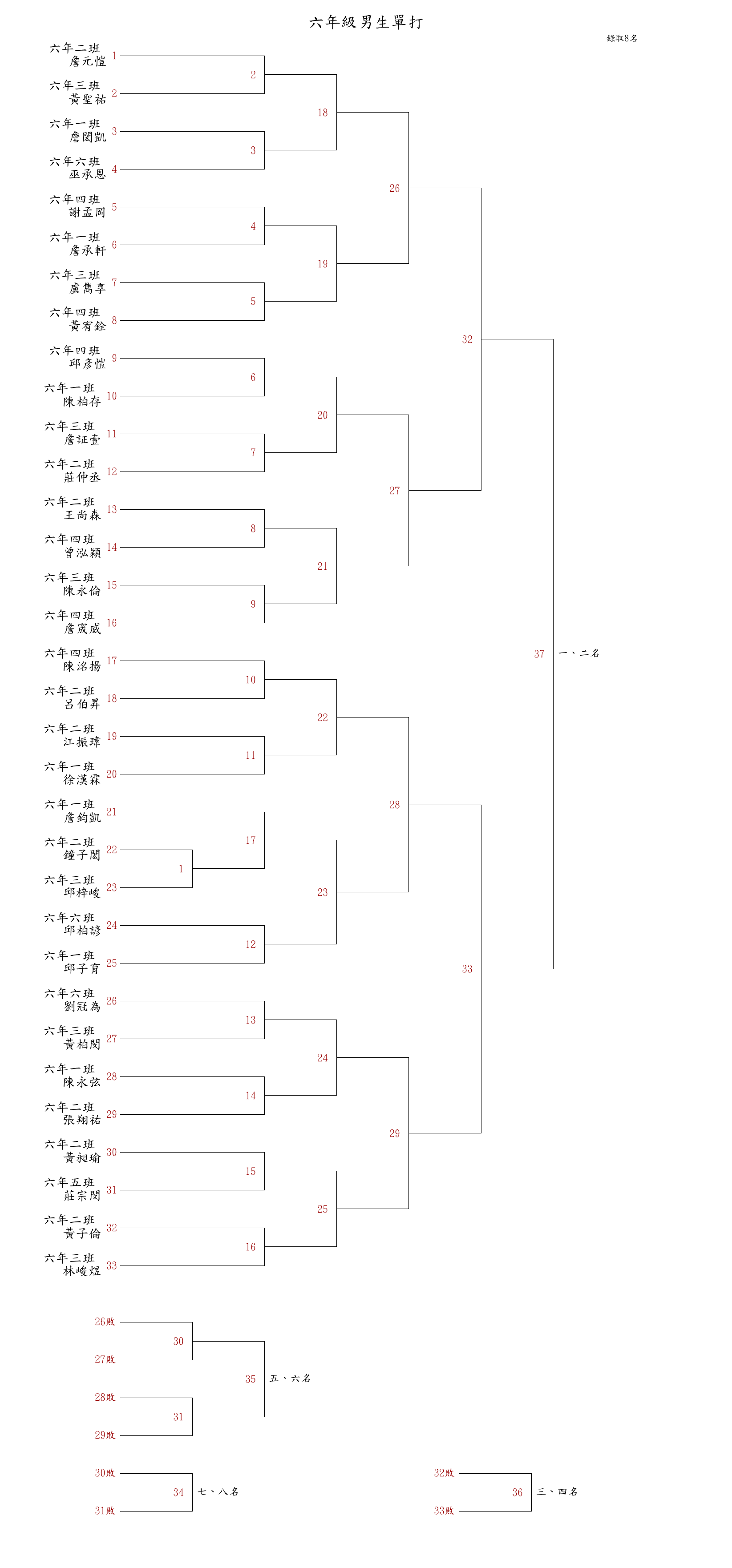 4 資料表尚未定義 六年級男生單打 單敗淘汰33 8