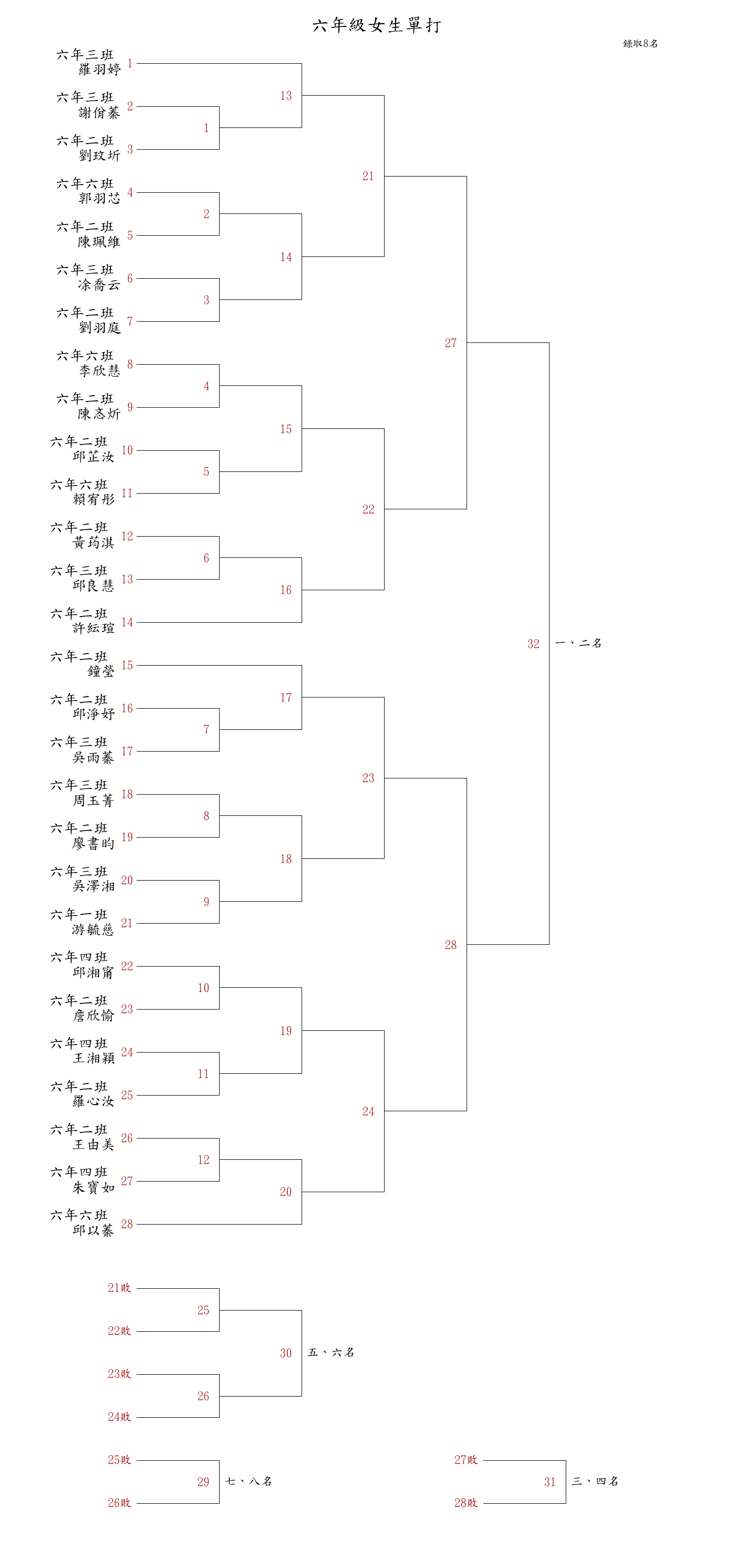 8 資料表尚未定義 六年級女生單打 單敗淘汰28 8